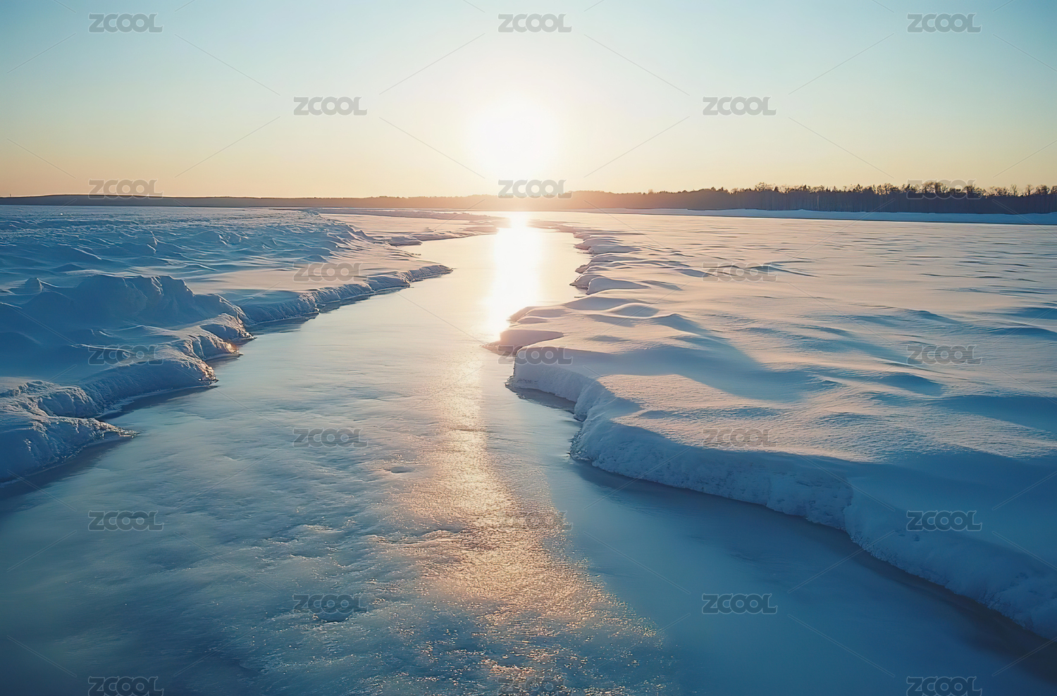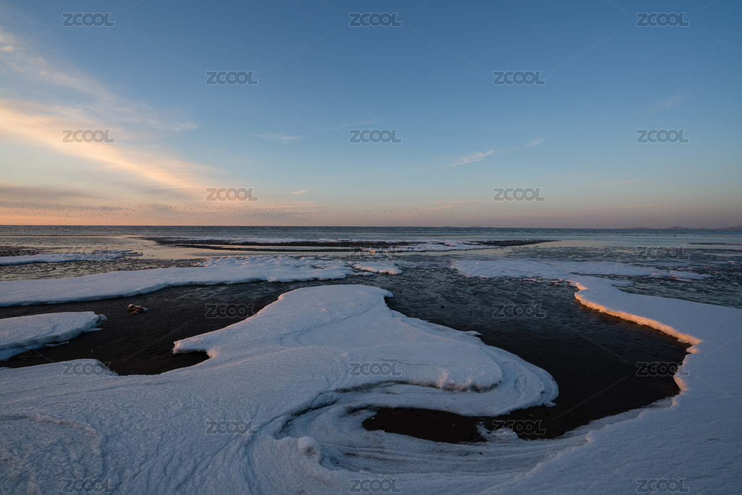 内蒙古赤峰达里诺尔湖冬日雪地日落风光