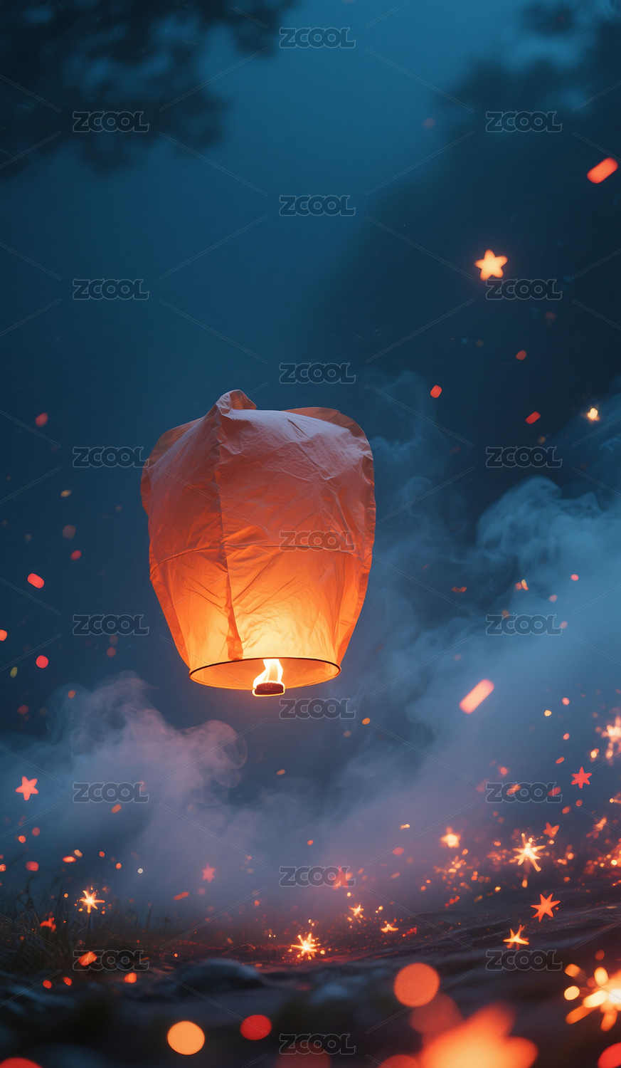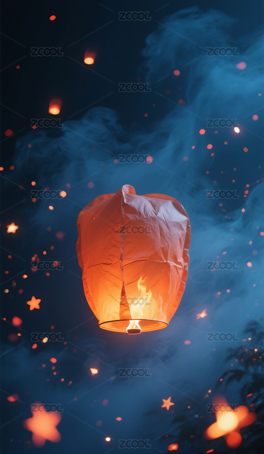 夜空孔明灯闪耀