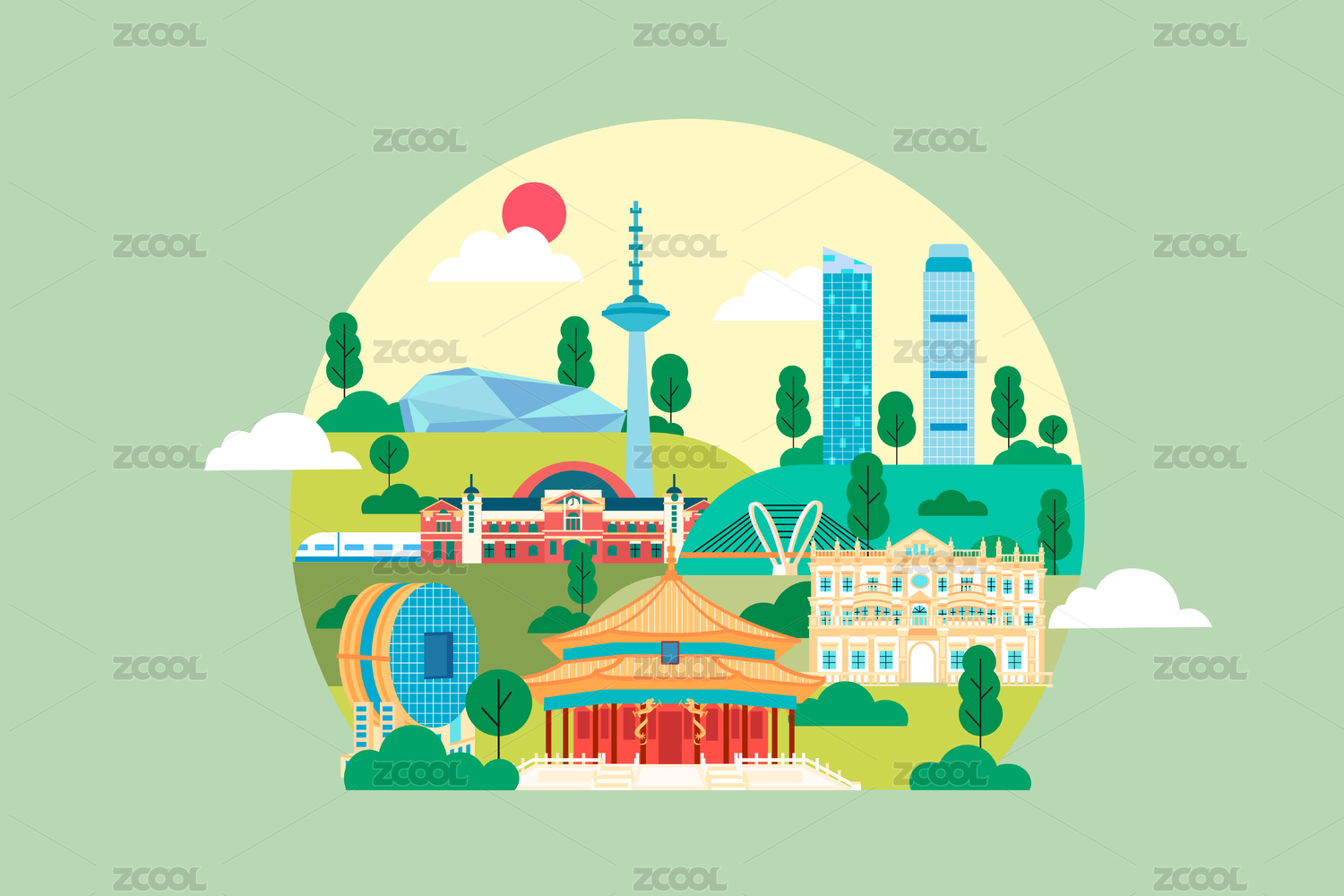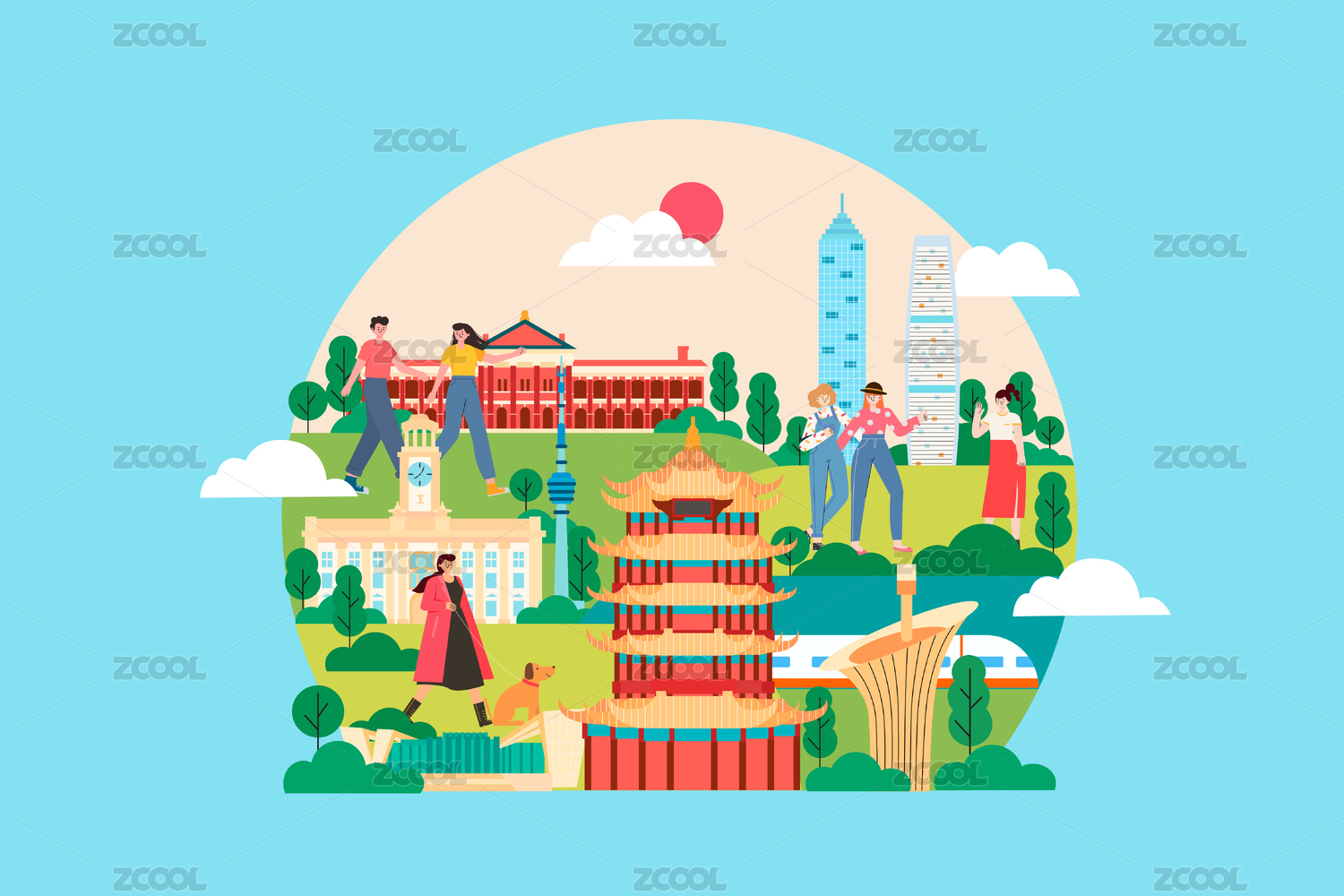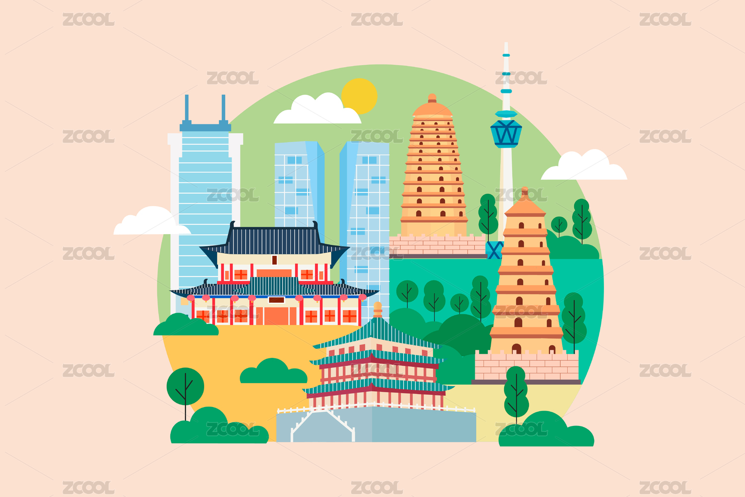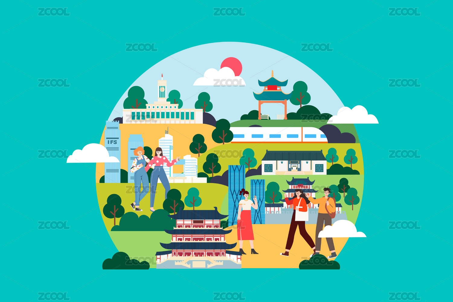 杭州,浙江,建筑,城市,矢量,插画,中国,文化,地标,都市