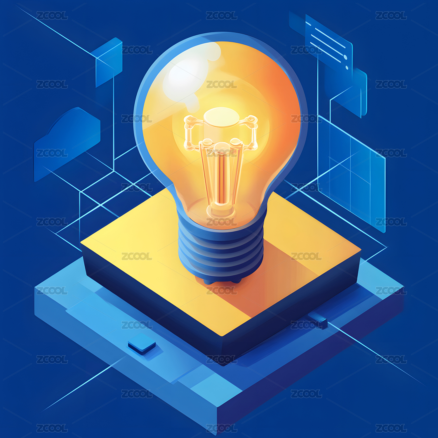 蓝色,渐变,灯泡,灯,亮,灵感,设计,元素,标志,素材