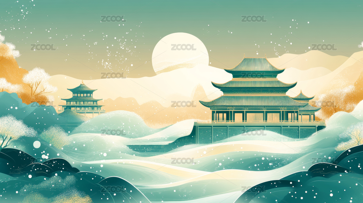 国风,建筑,古代,城楼,云,祥云,中式,风景,中国风,插画