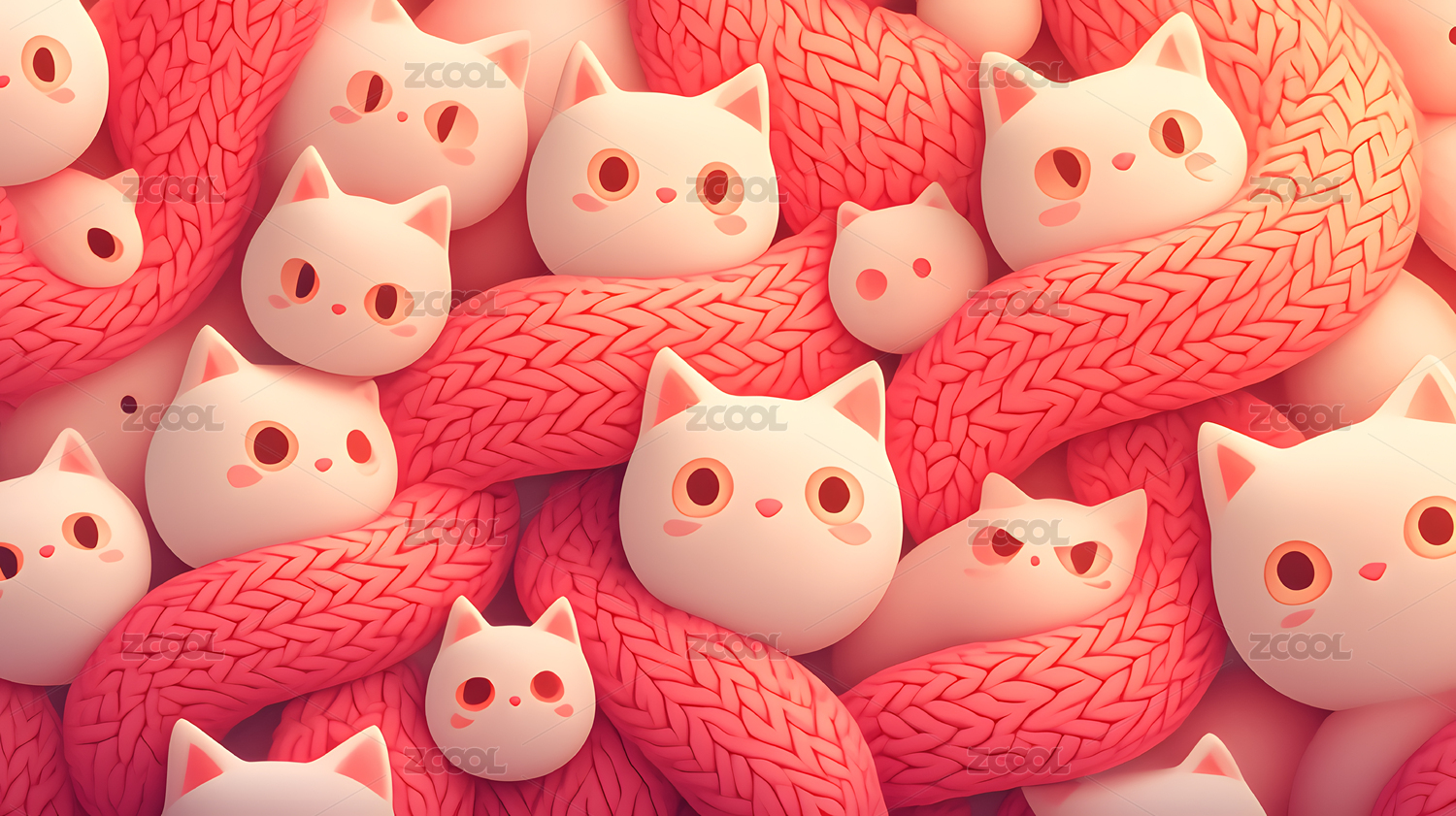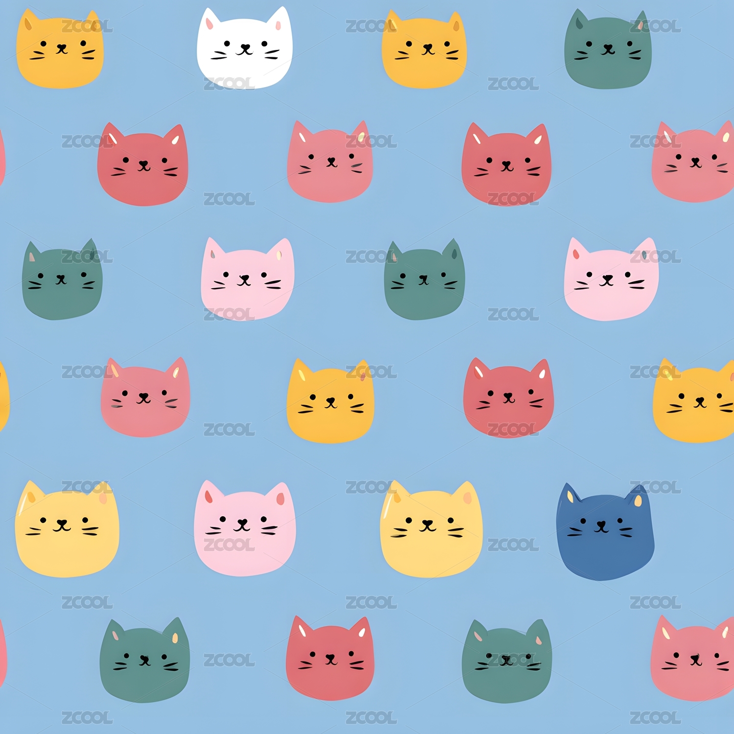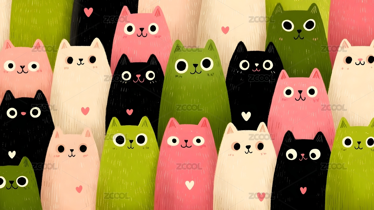 手绘彩色卡通猫猫质感笔触抽象装饰画背景