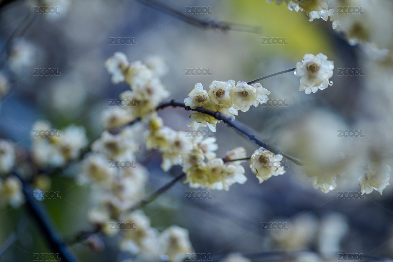 雨中盛开的美丽腊梅花。