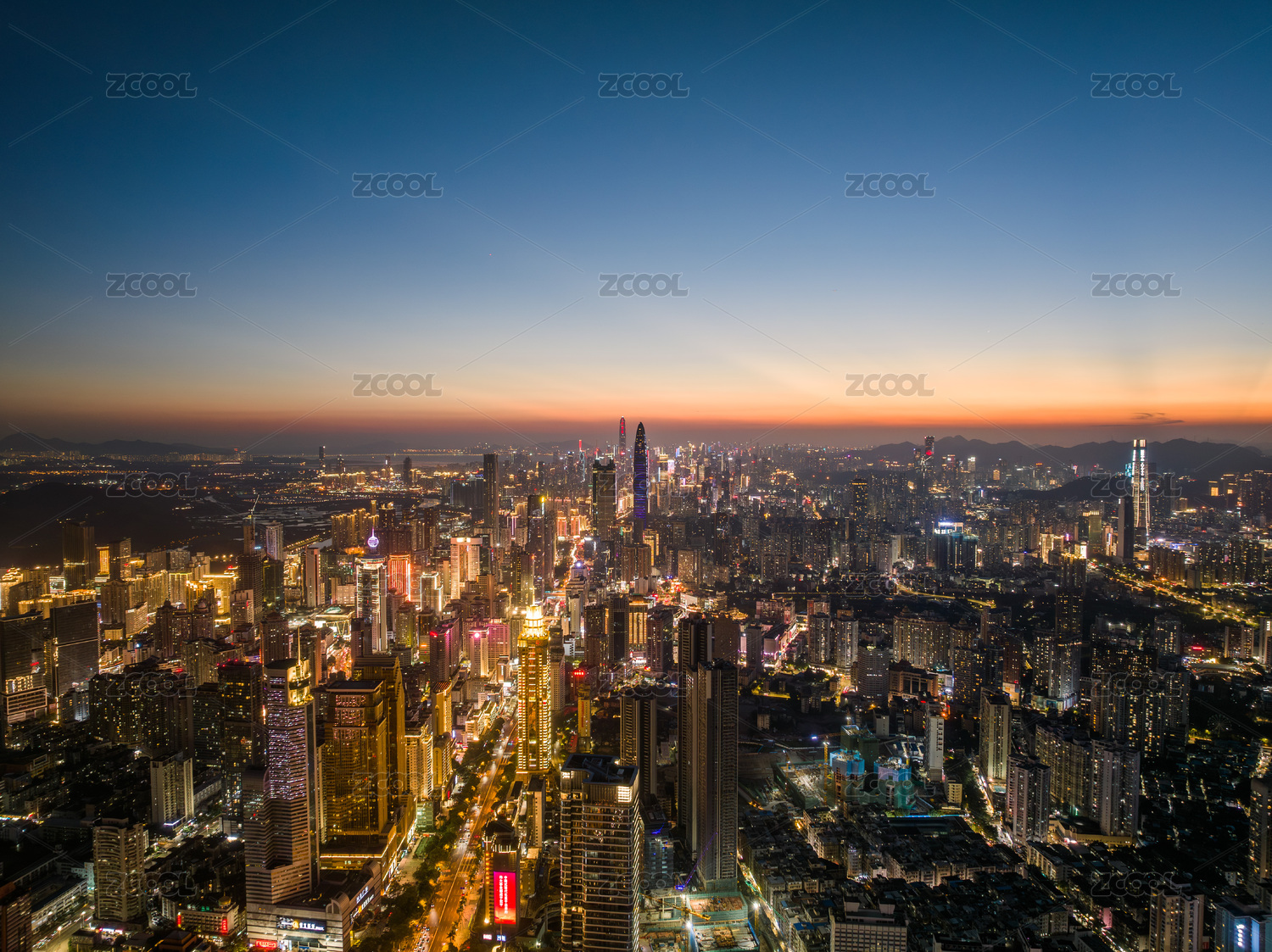 深圳罗湖CBD大湾区大厦日落蓝调航拍