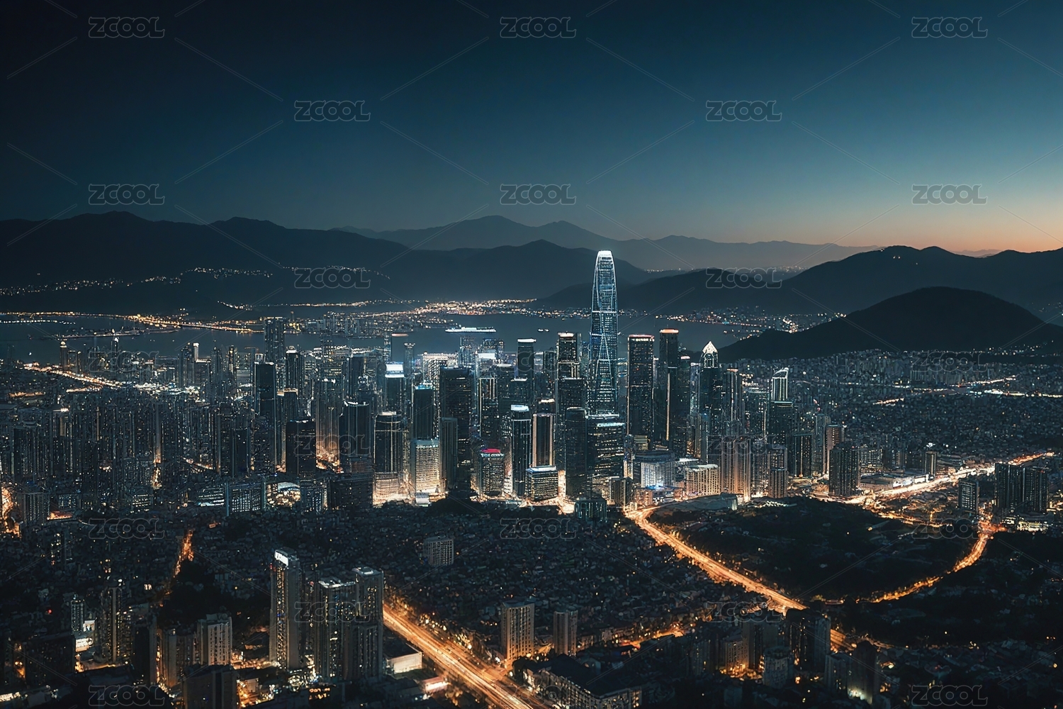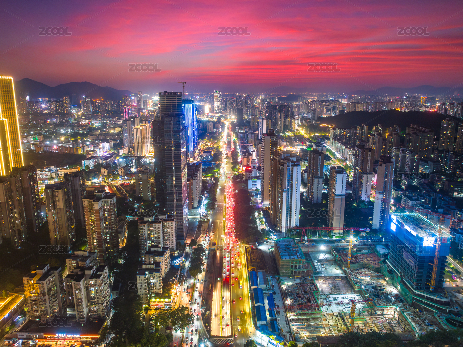 罗湖,地王大厦,京基100,日落,车流,罗湖区,深圳,航拍,地标,夜景