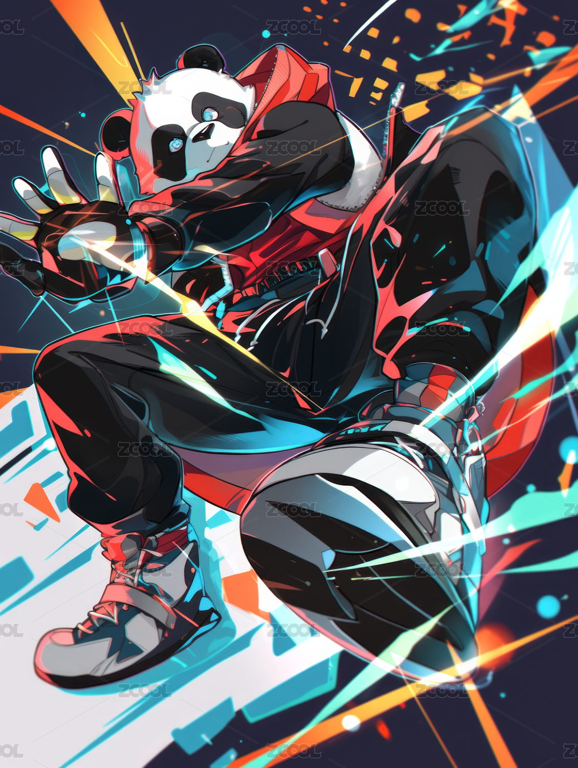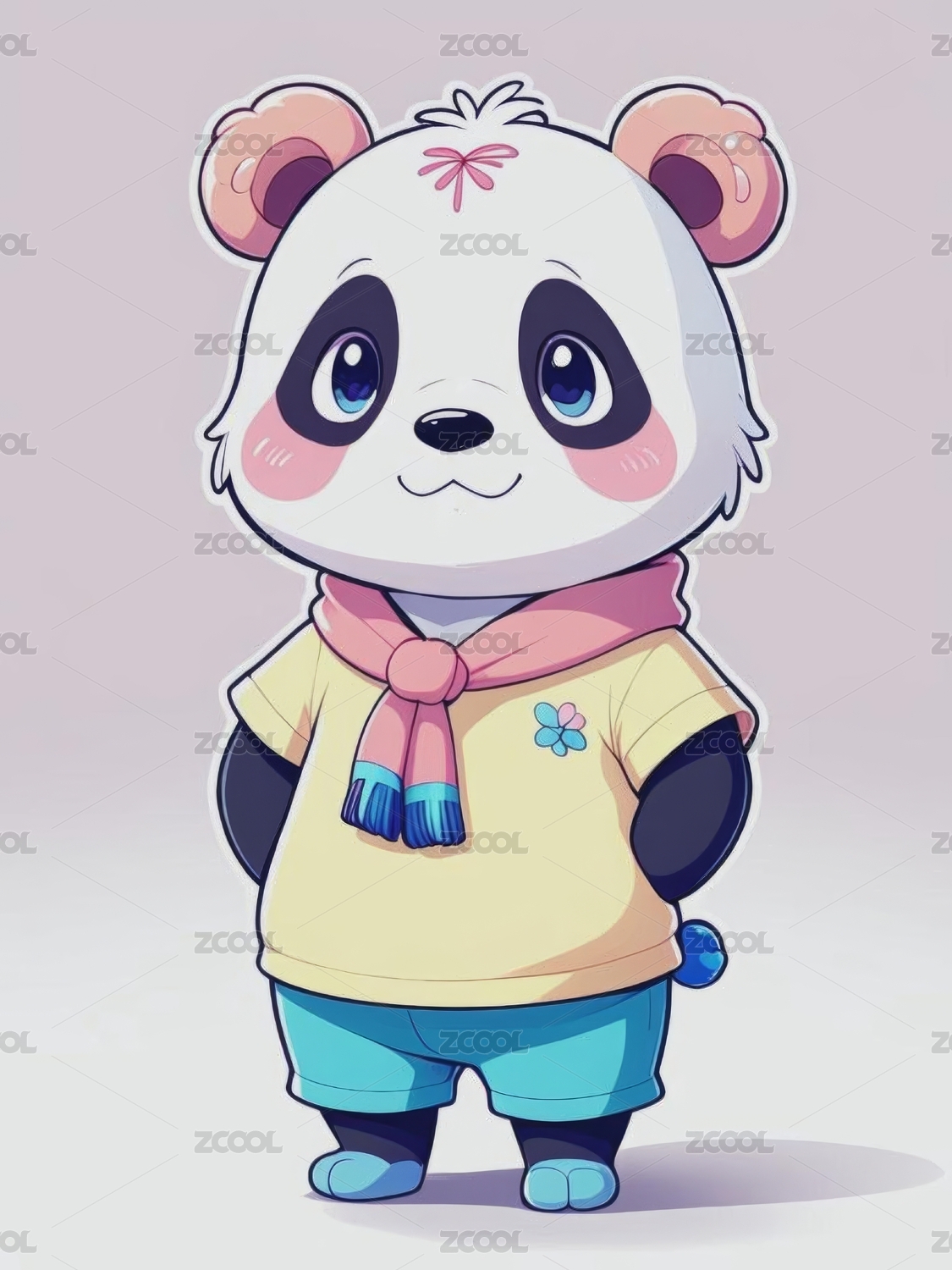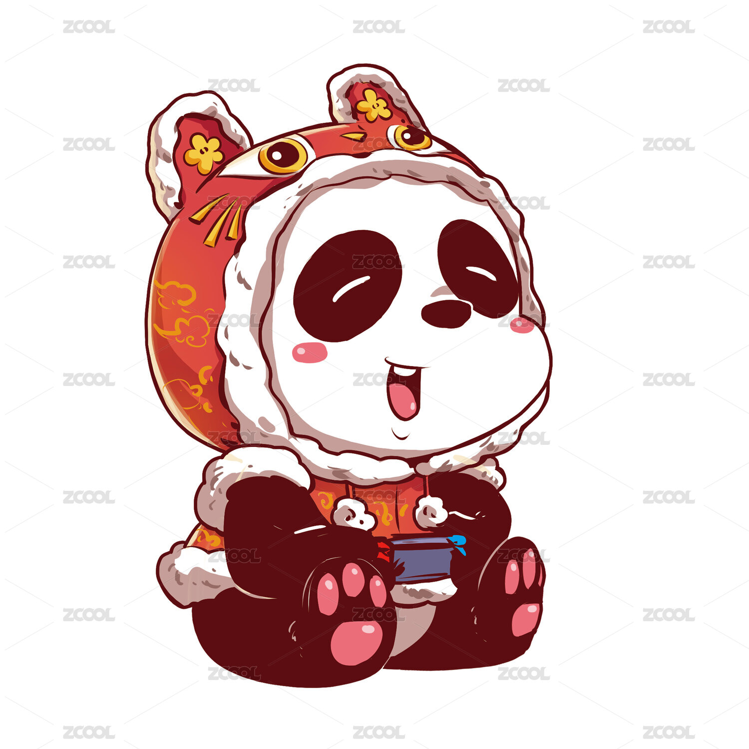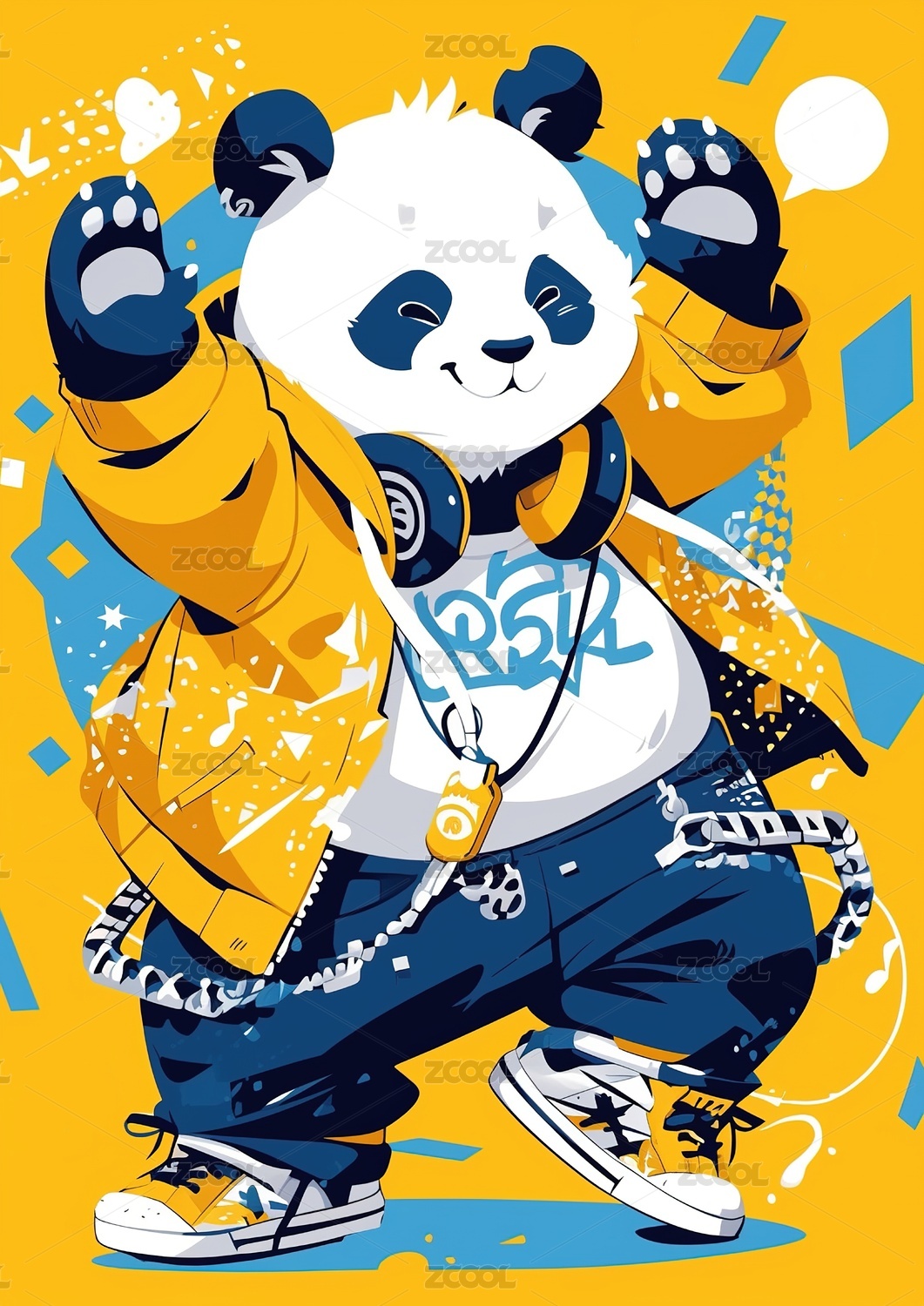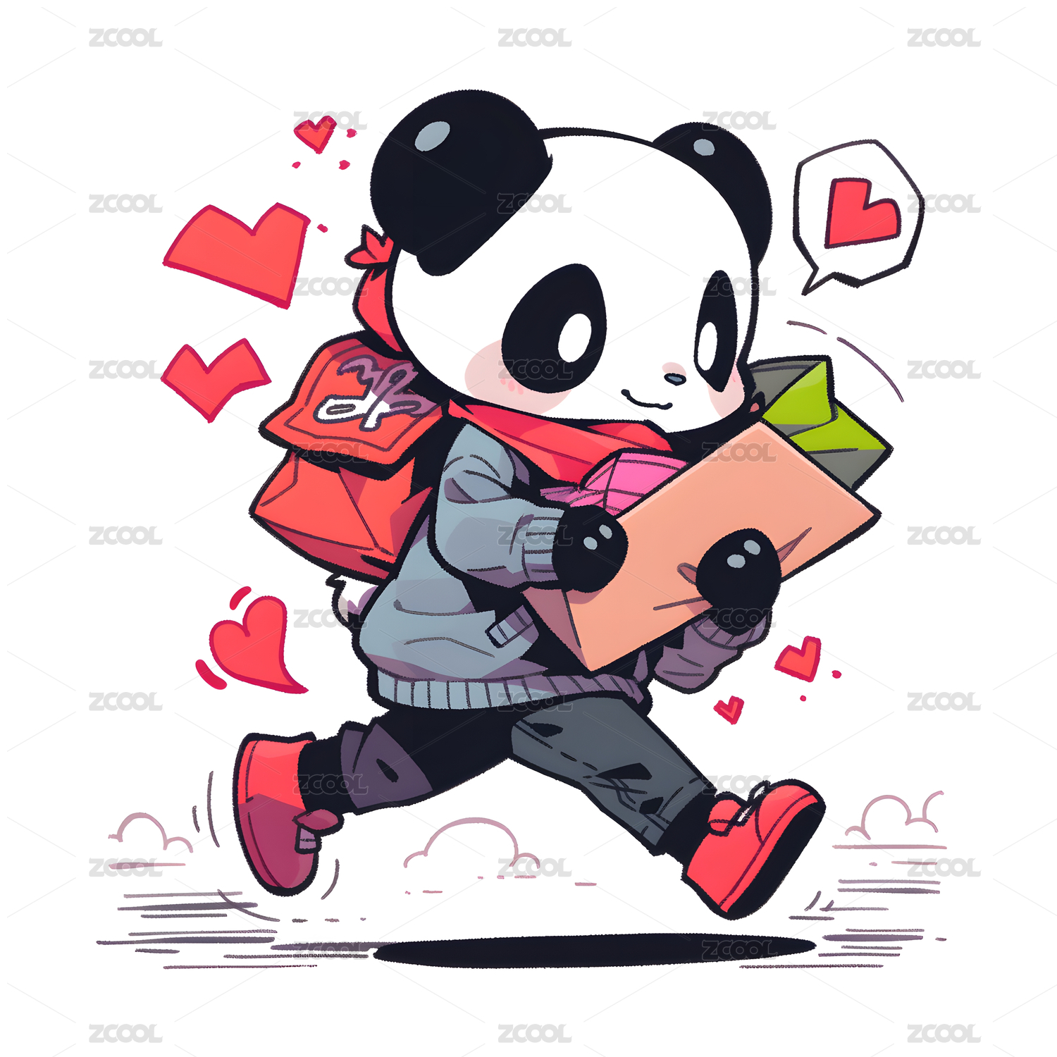 熊猫,插画,插图,2D,拟人,行走,运动,开心,简约,商业