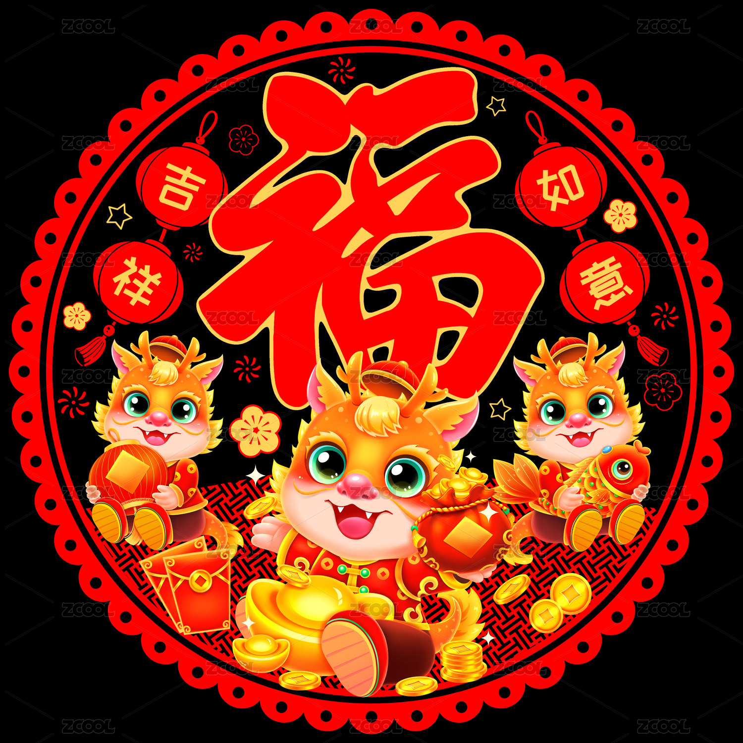 国潮喜庆新年春节蓝色生肖龙小斗方福