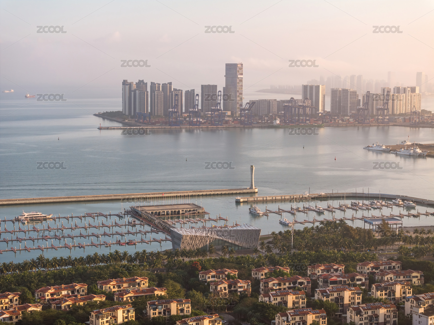 海南海口海滨新城游艇码头世贸大厦高空航拍
