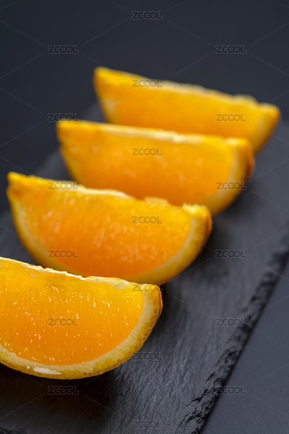 切开的橙子放在木板上