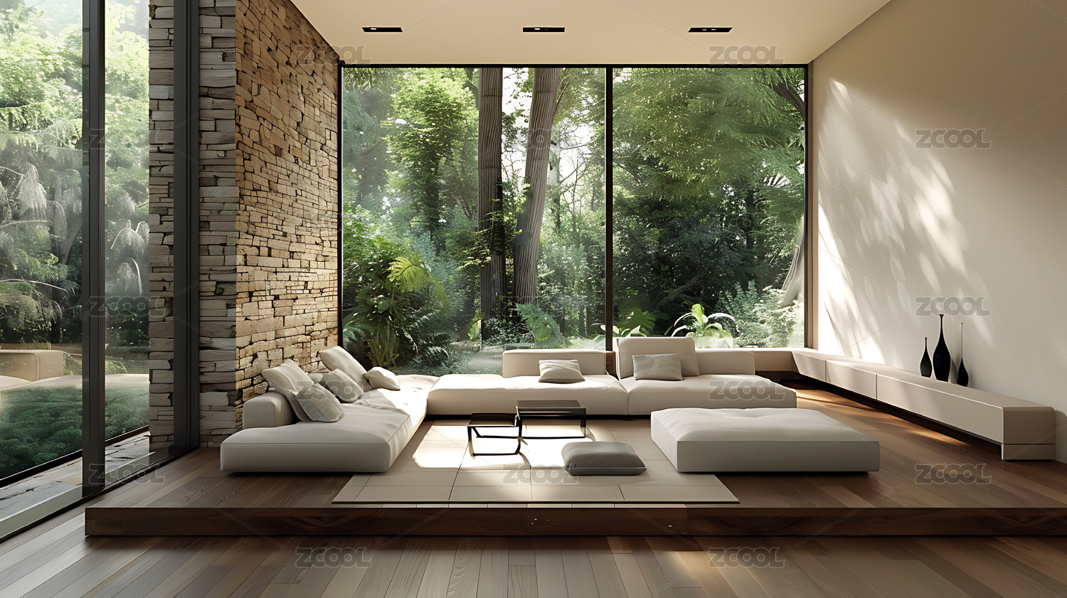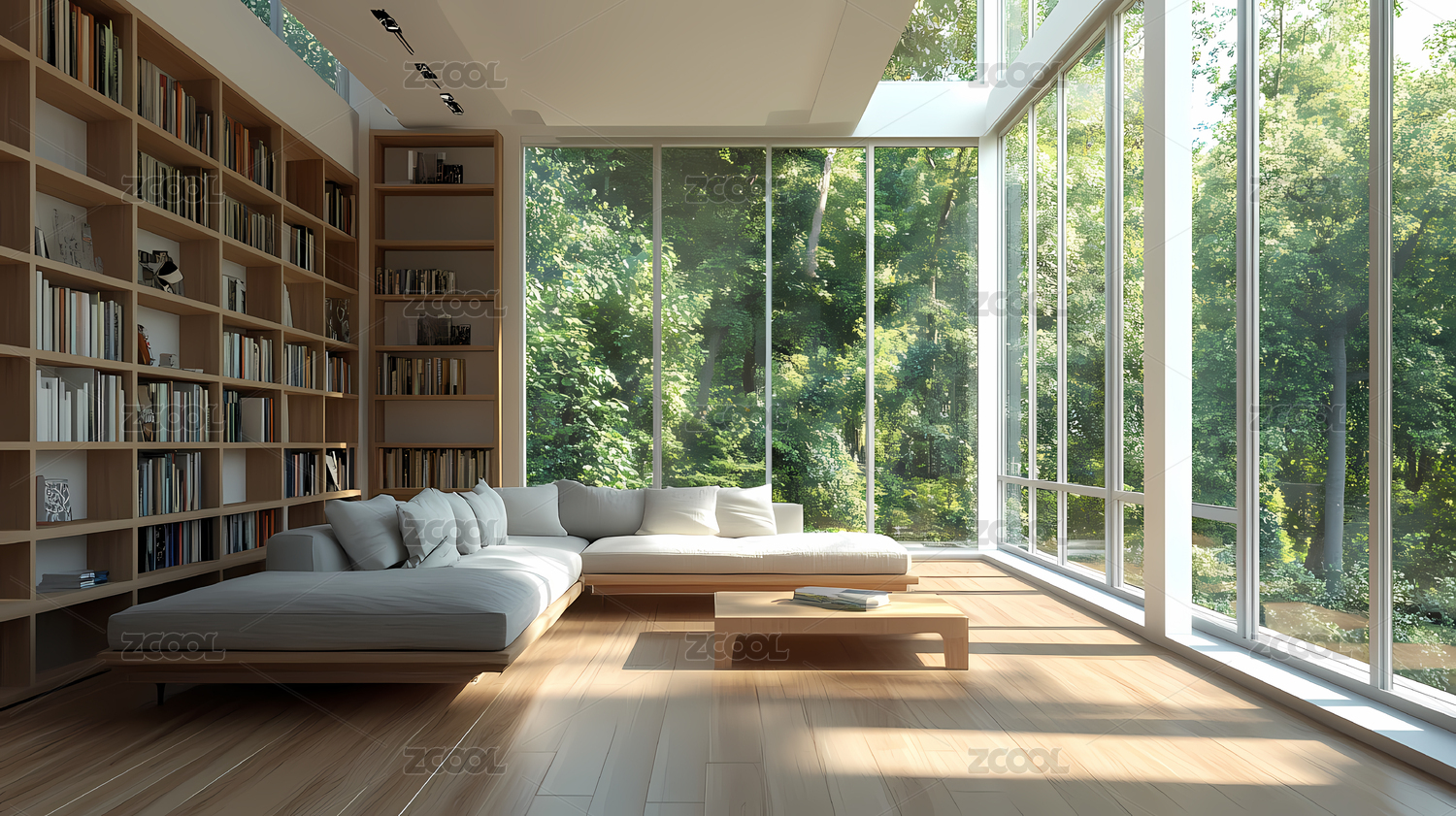 平台床,中性色,大窗户,现代,创意,家居,房屋,景观,城市,极简