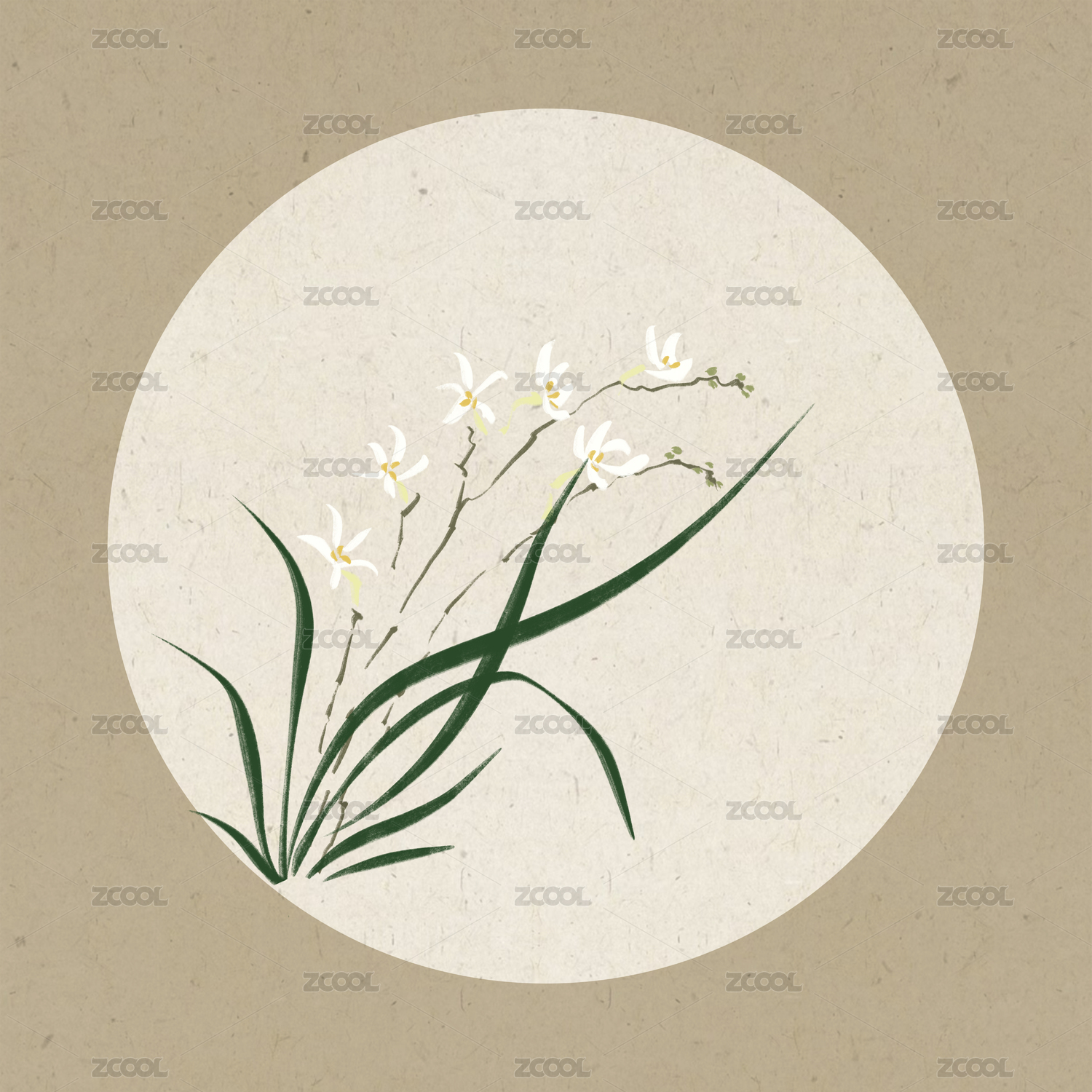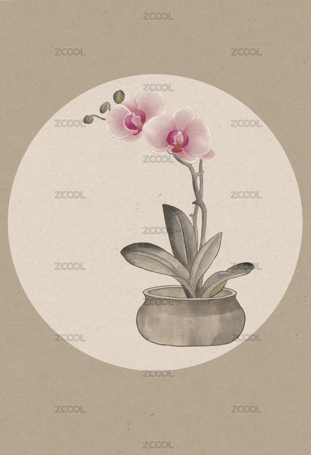 蝴蝶兰,中式,水墨,国潮,国风,创意,花朵