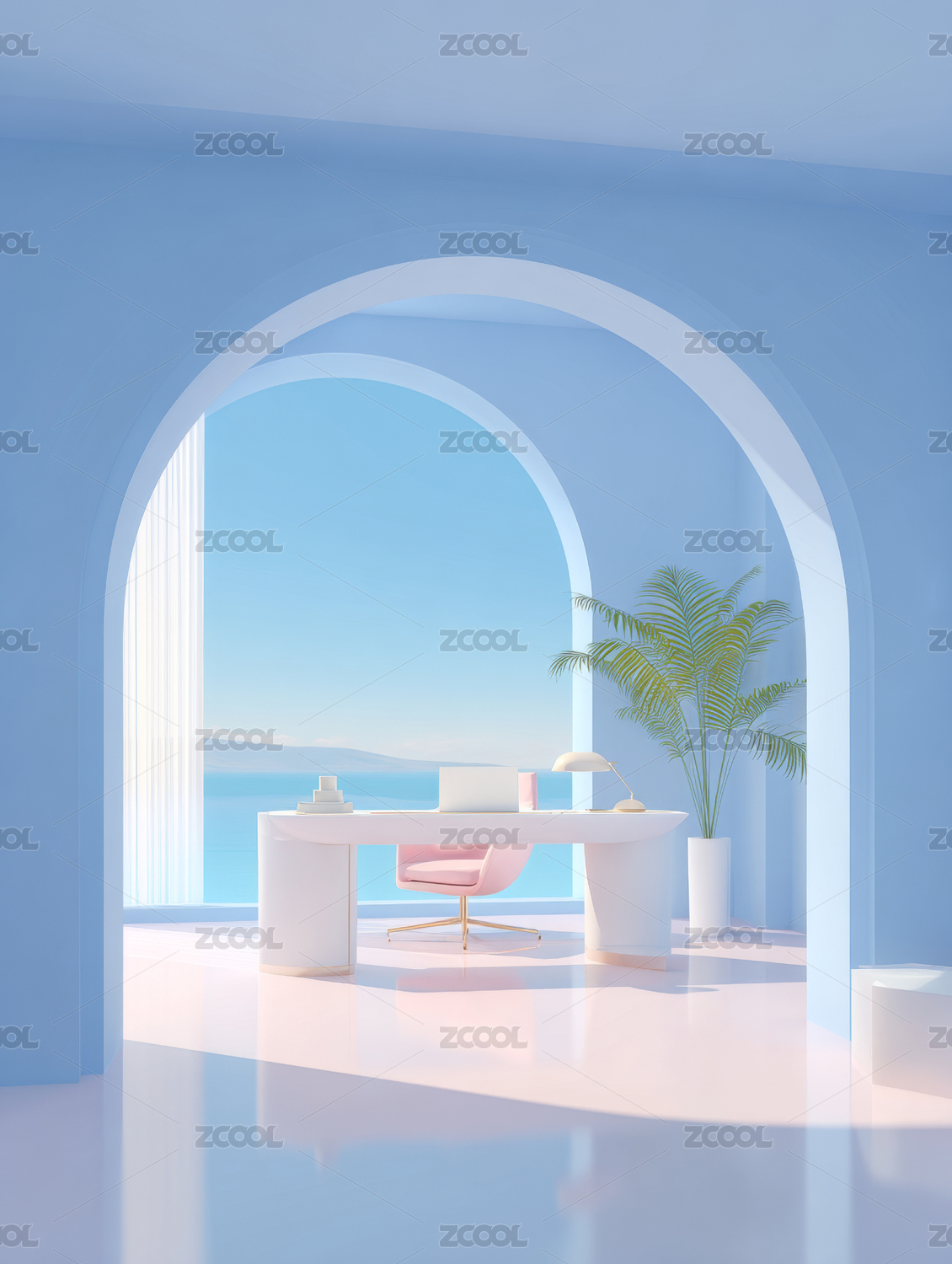 粉色拱窗客厅室内场景