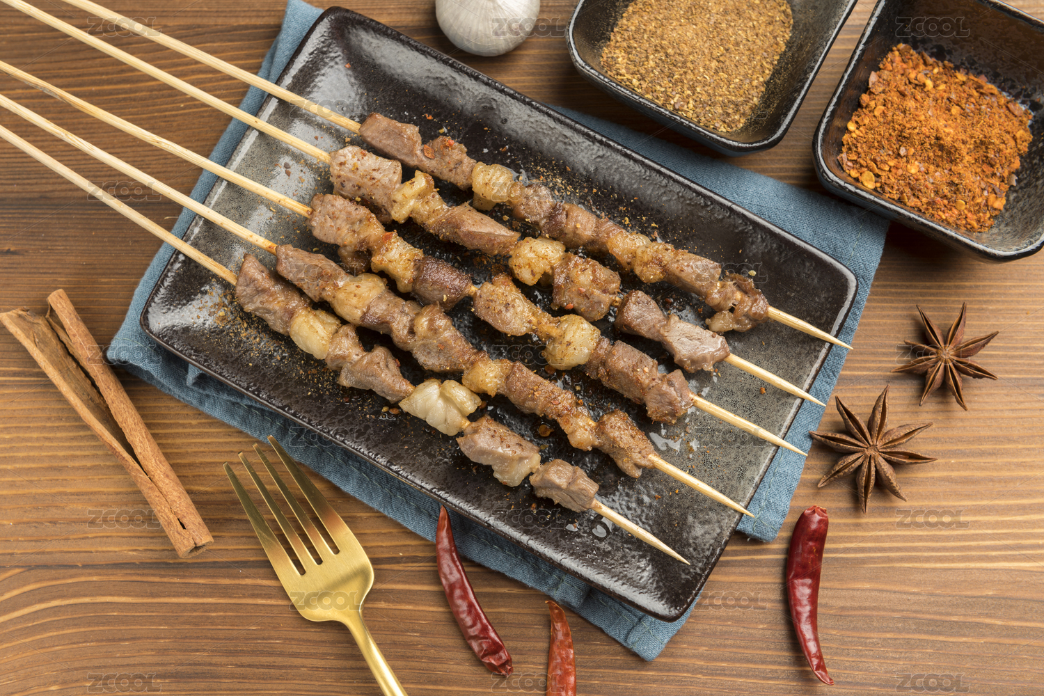 一盘烤羊肉串,烤羊肉串,炸羊肉串,羊肉串,肉串,烤串,烤肉串,一盘,手拿,手拿羊肉串
