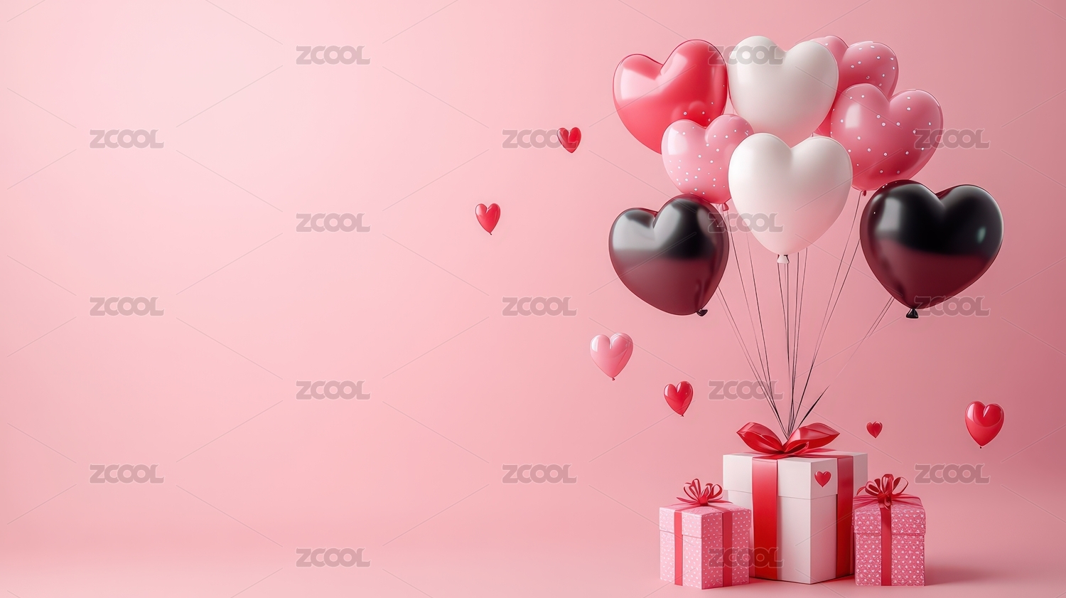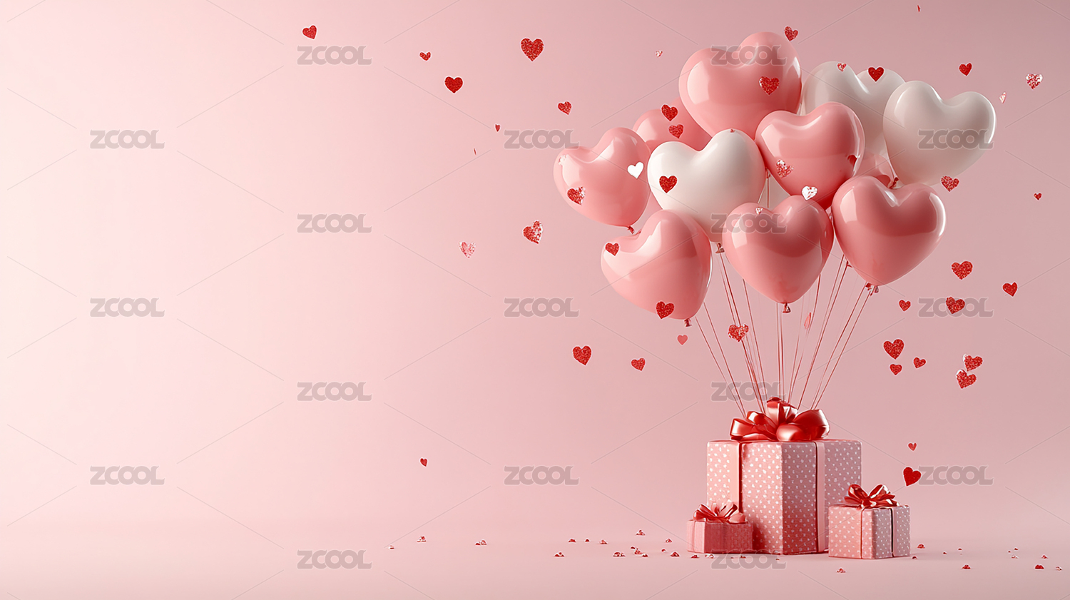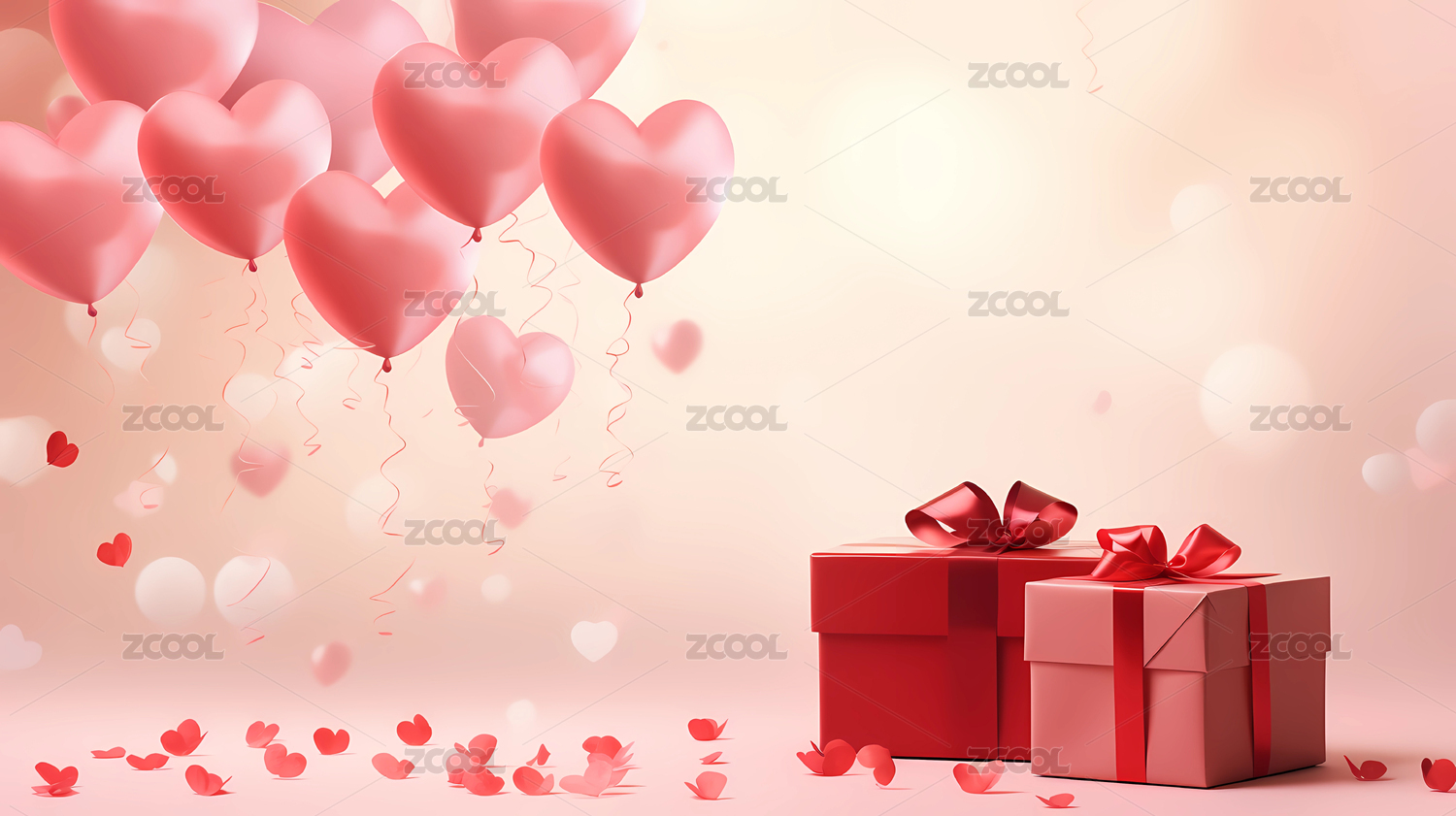 心形的粉色气球和礼盒