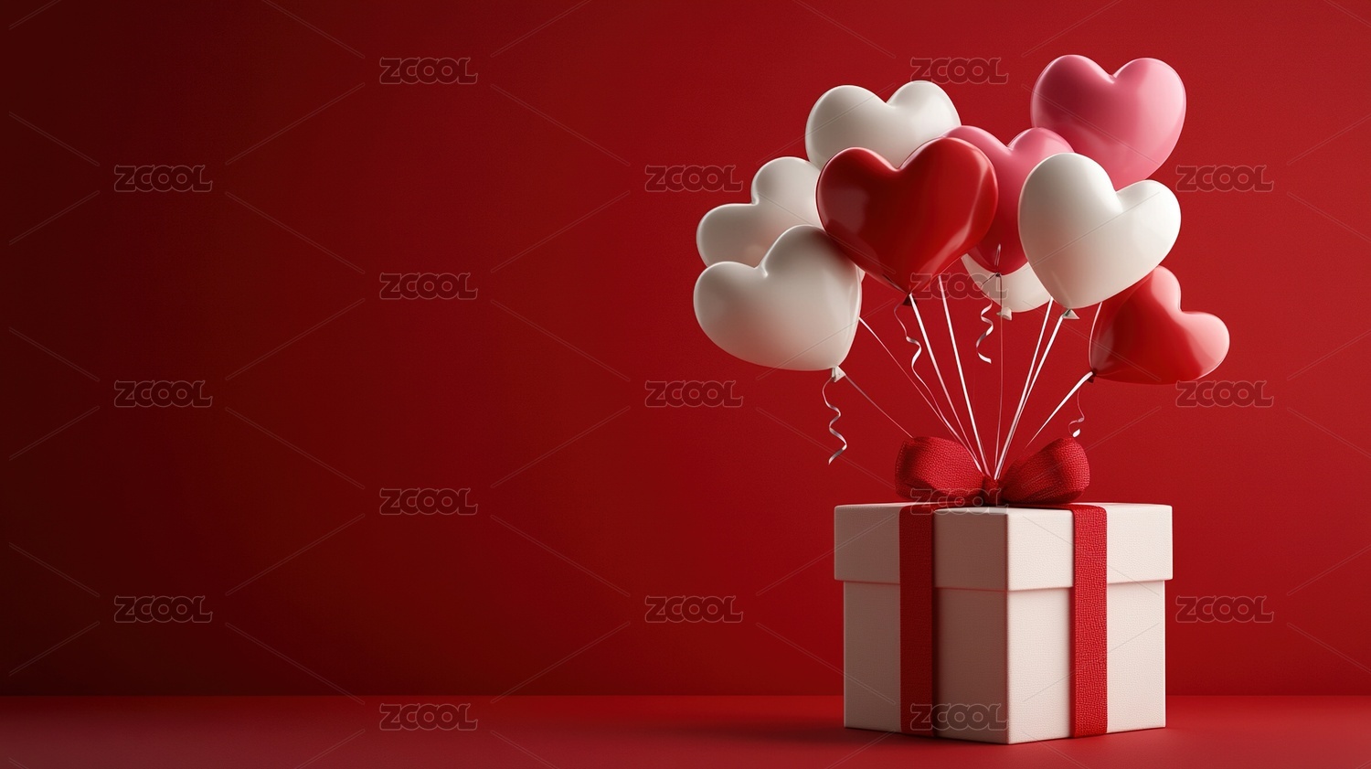 礼品盒上面有一条红丝带心形气球