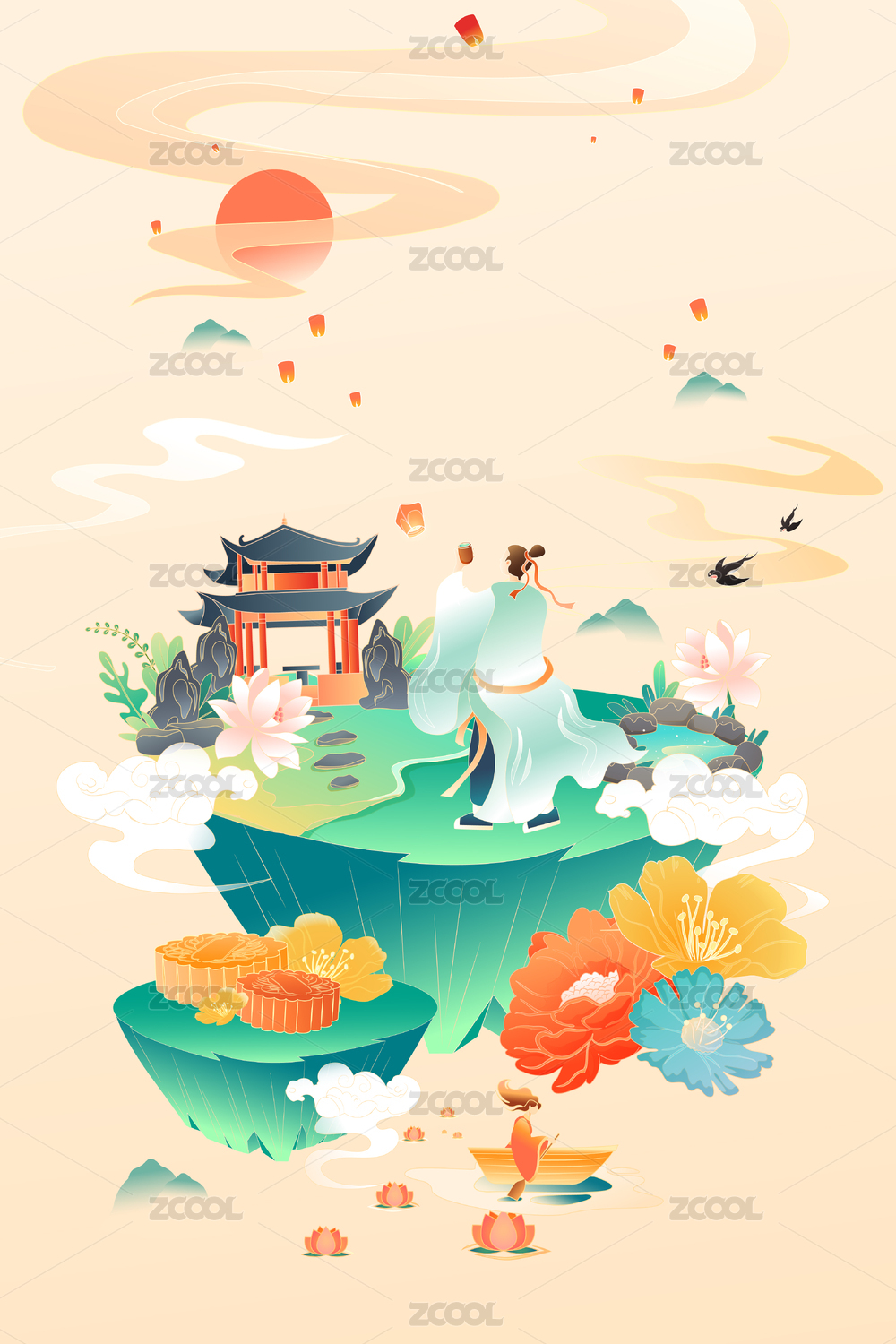 中秋节中国风矢量插画