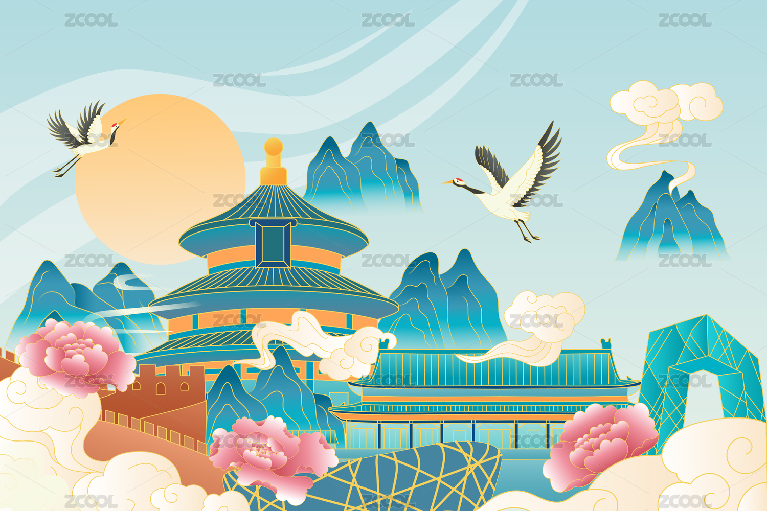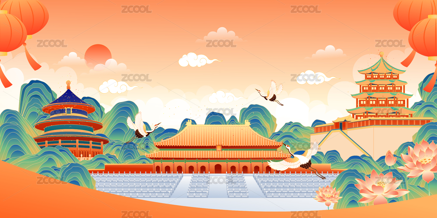 国庆节,中秋节,新年,节日,城市,插画,风景,中国风,旅行,风光