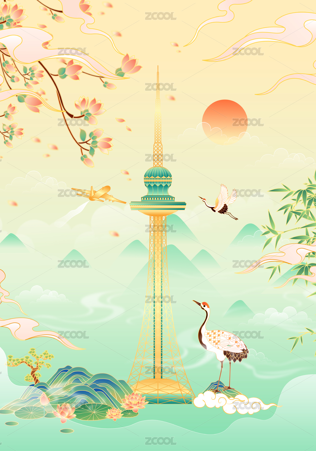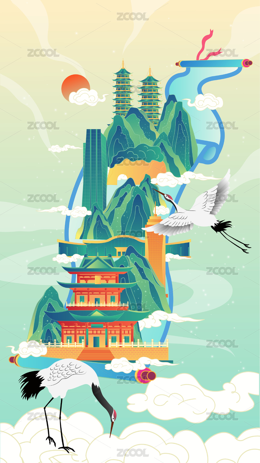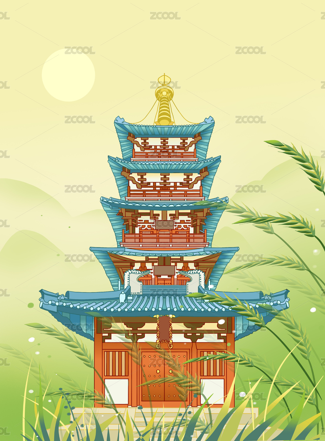 江苏,无锡,拈花湾,拈花塔,建筑,古建筑,插画,旅游,旅行,户外