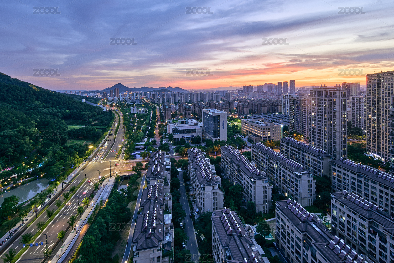 杭州滨江区萧山区城市建筑夜景风光航拍