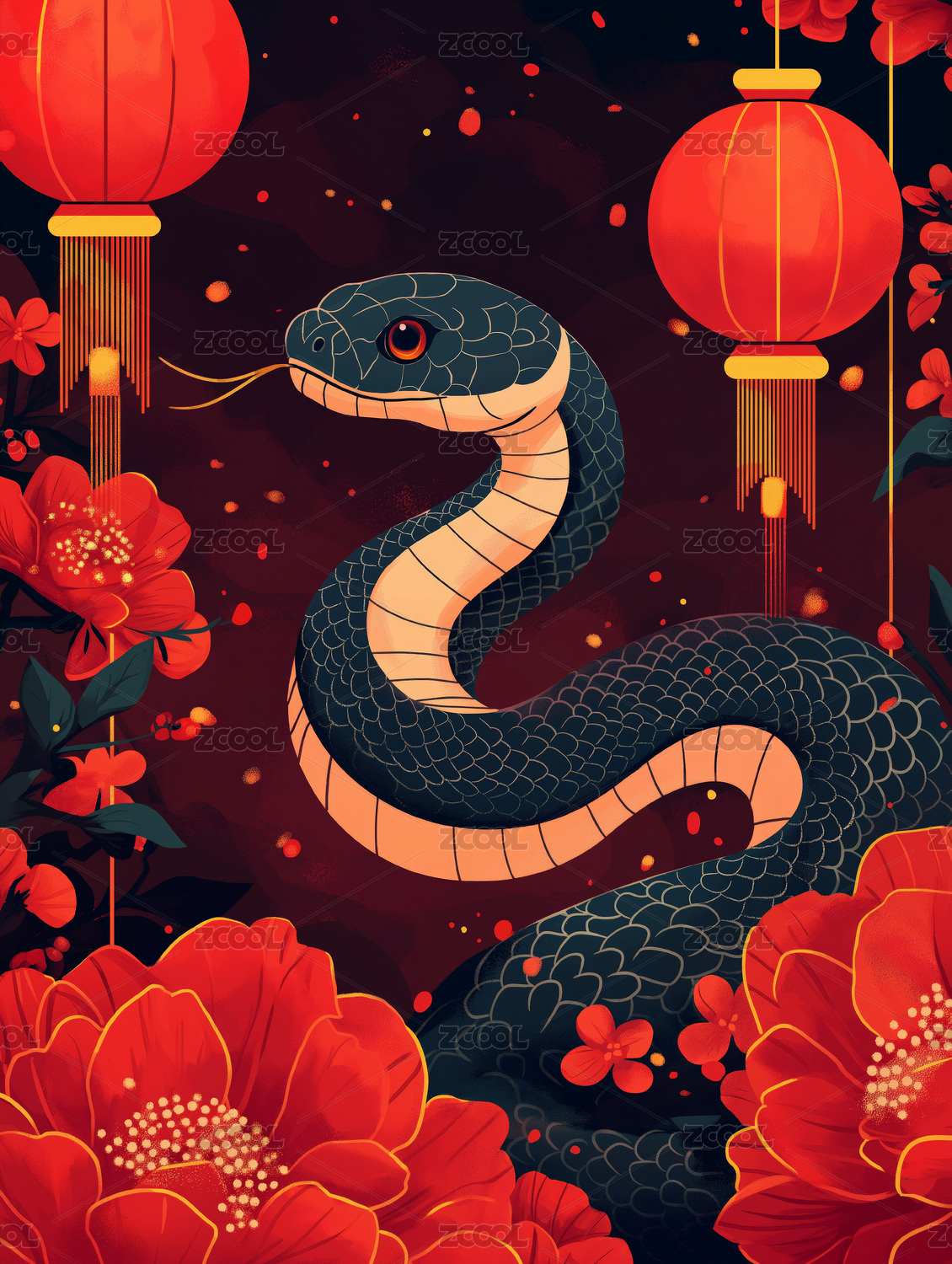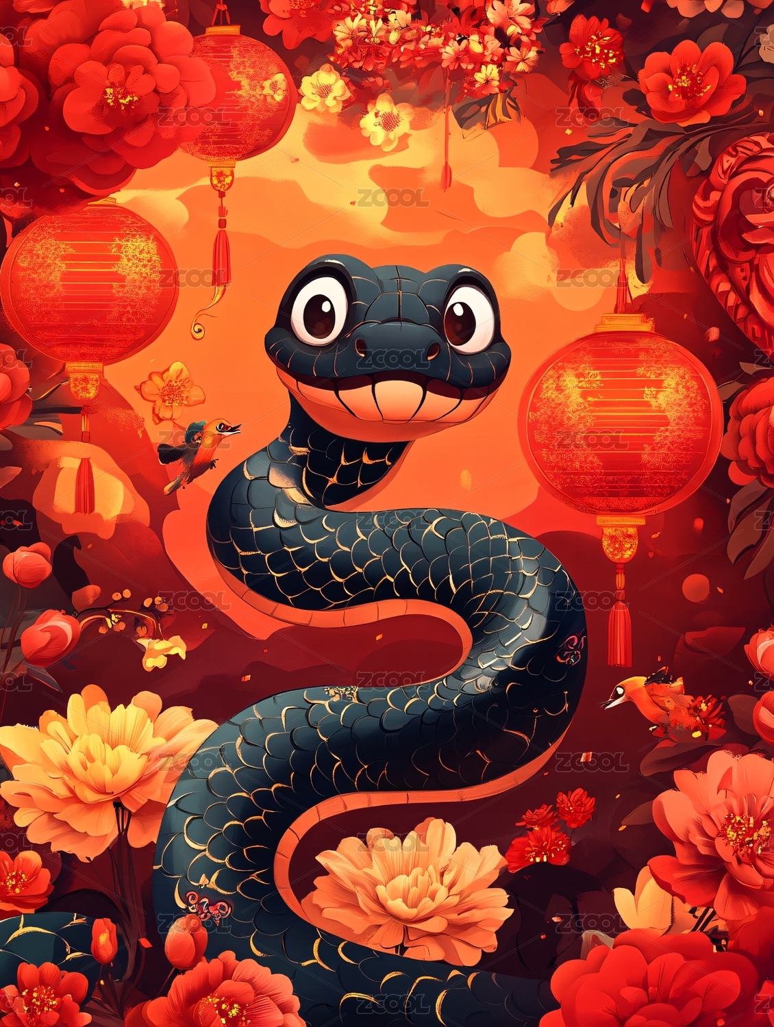 蛇年春节喜庆可爱年画动物IP 十二生肖
