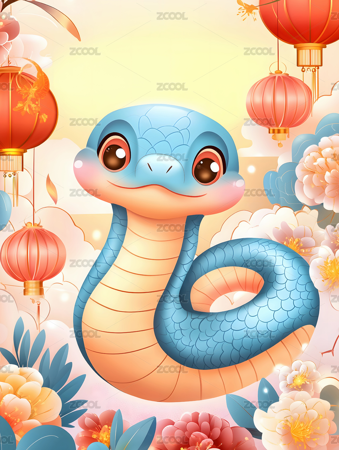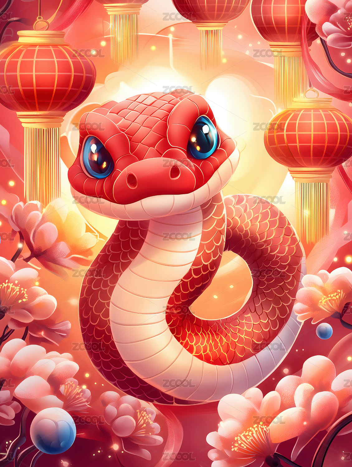 2025春节金蛇宝宝蛇年可爱吉祥物年画