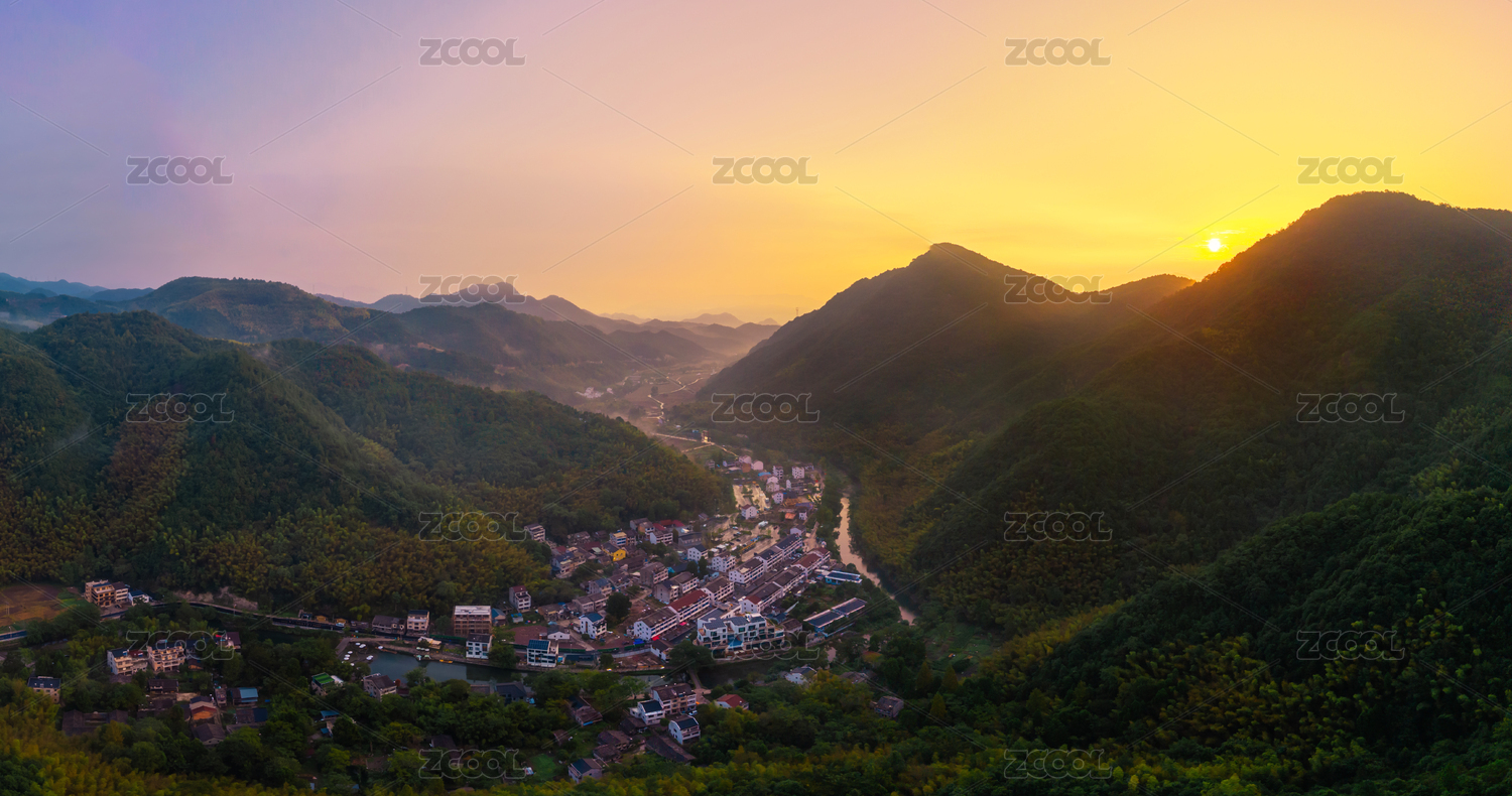 航拍黄昏时分的中国湖州德清山谷自然风光