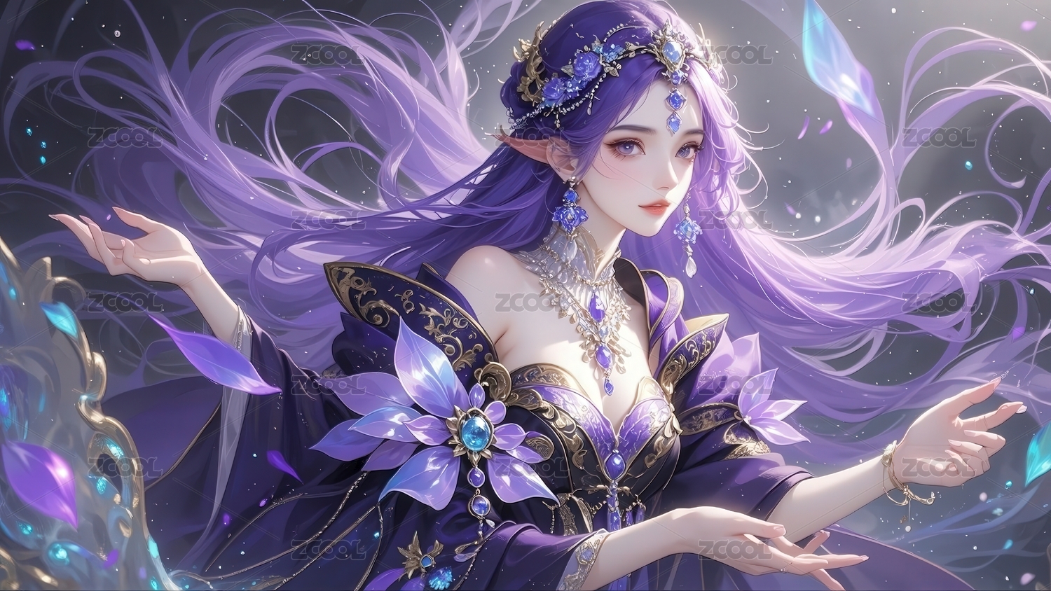 神秘紫衣女子的奇幻形象