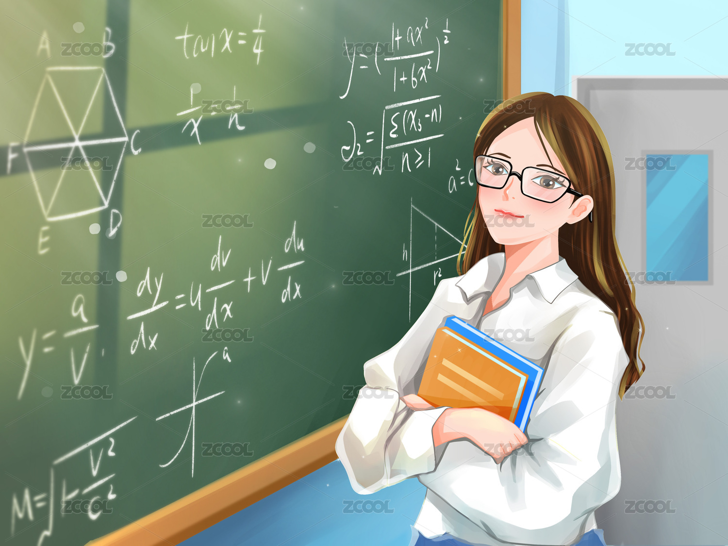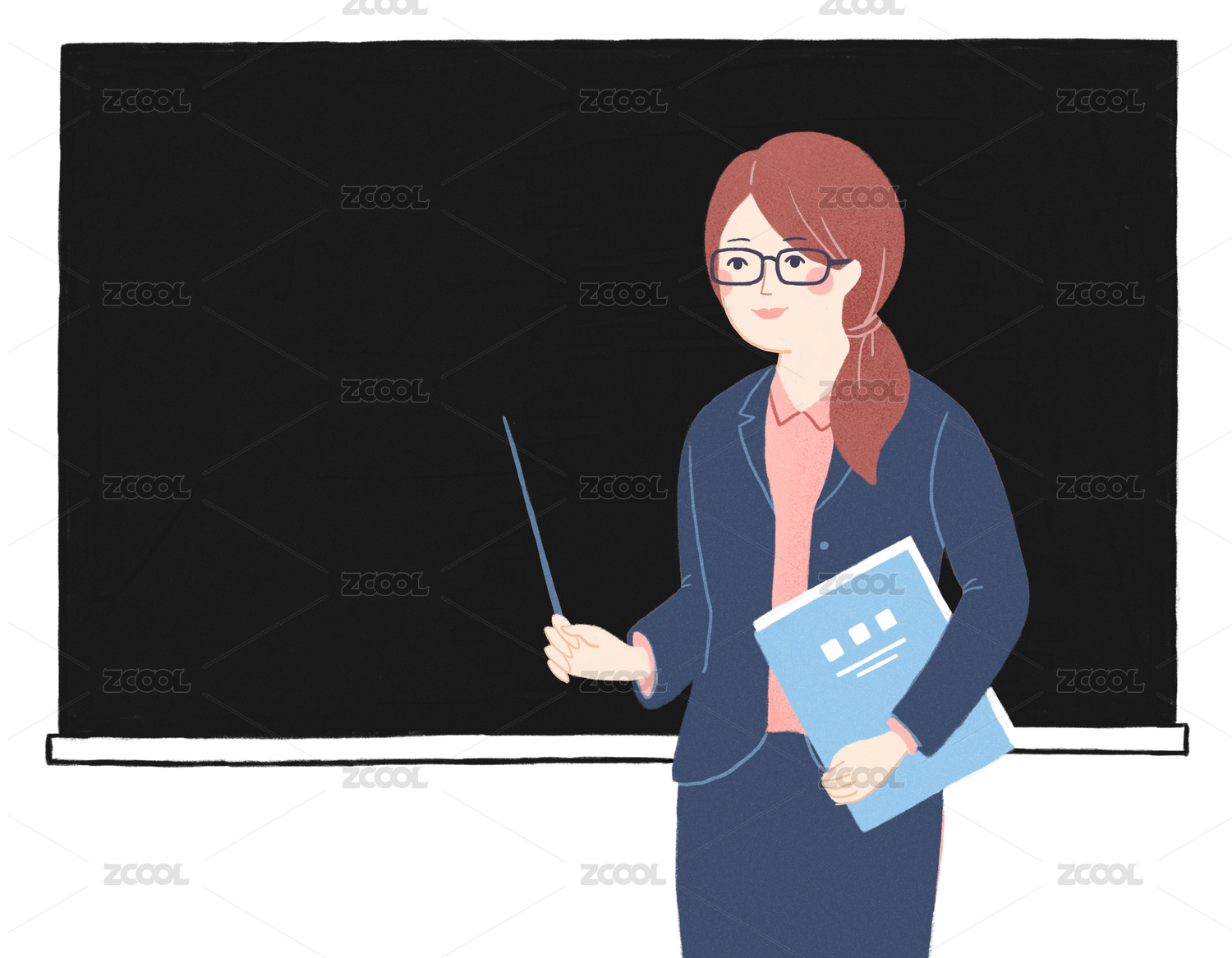 数学教师课堂授课讲解插画场景