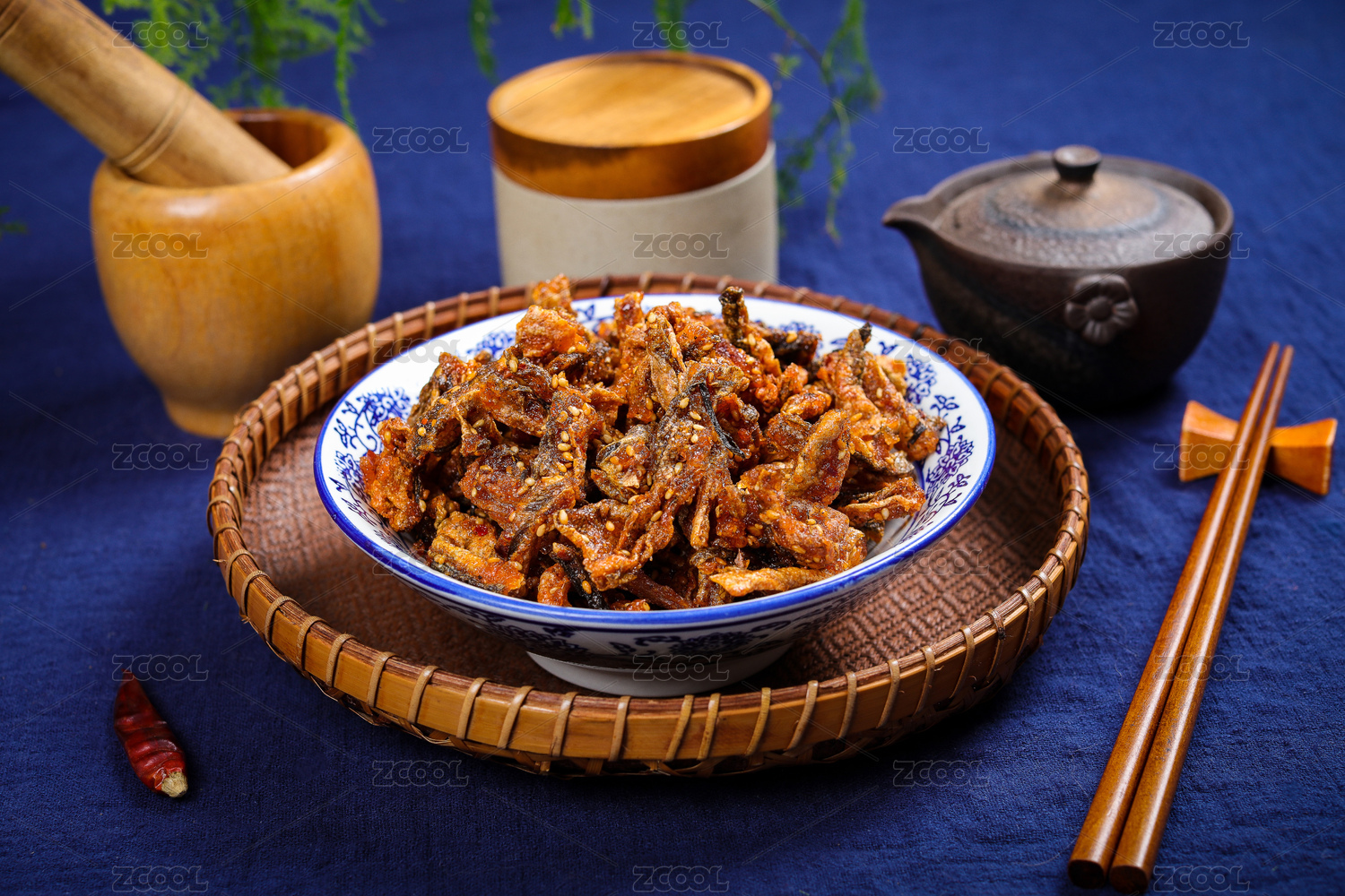 桌面上的盘子里的美味可口的磷虾干
