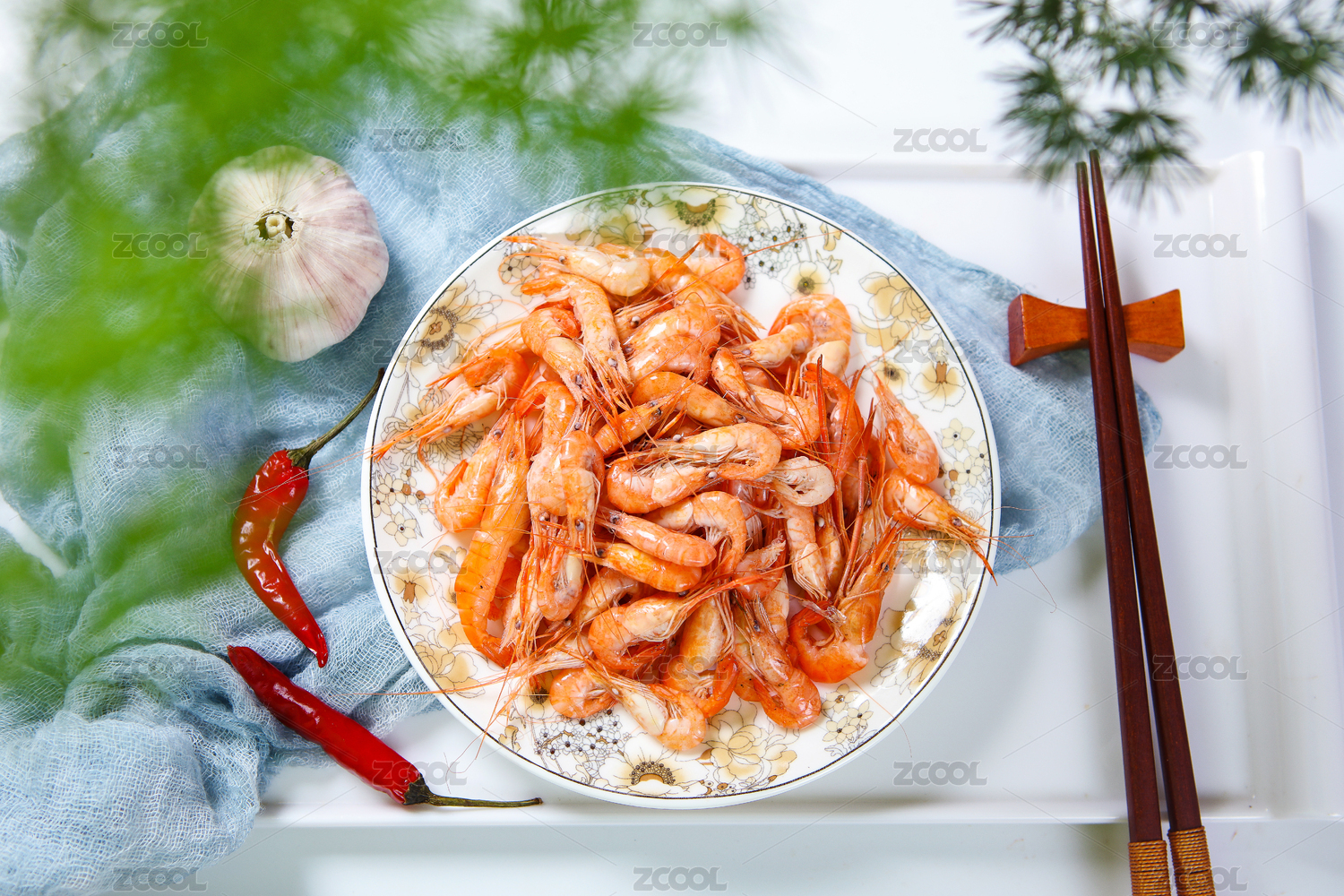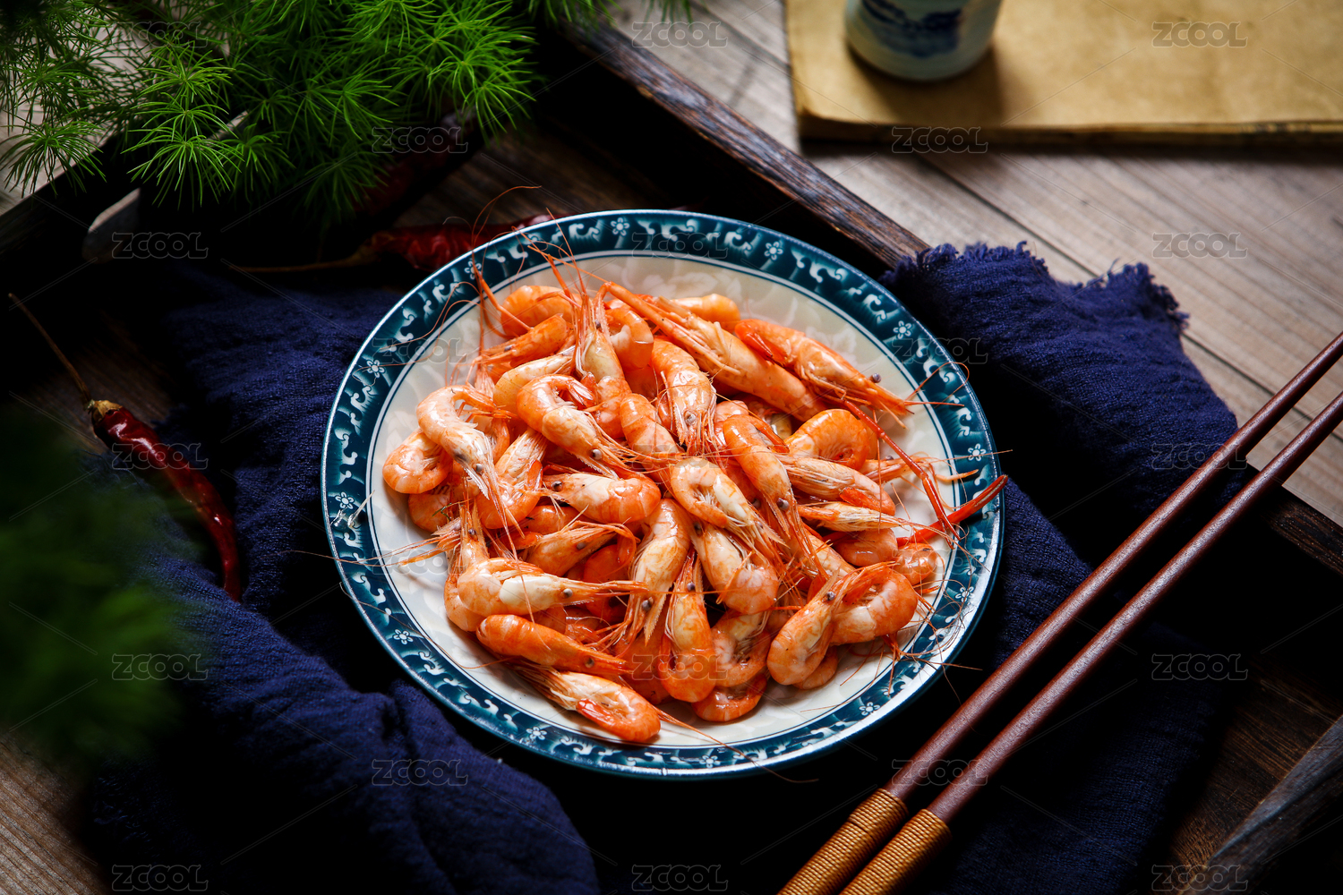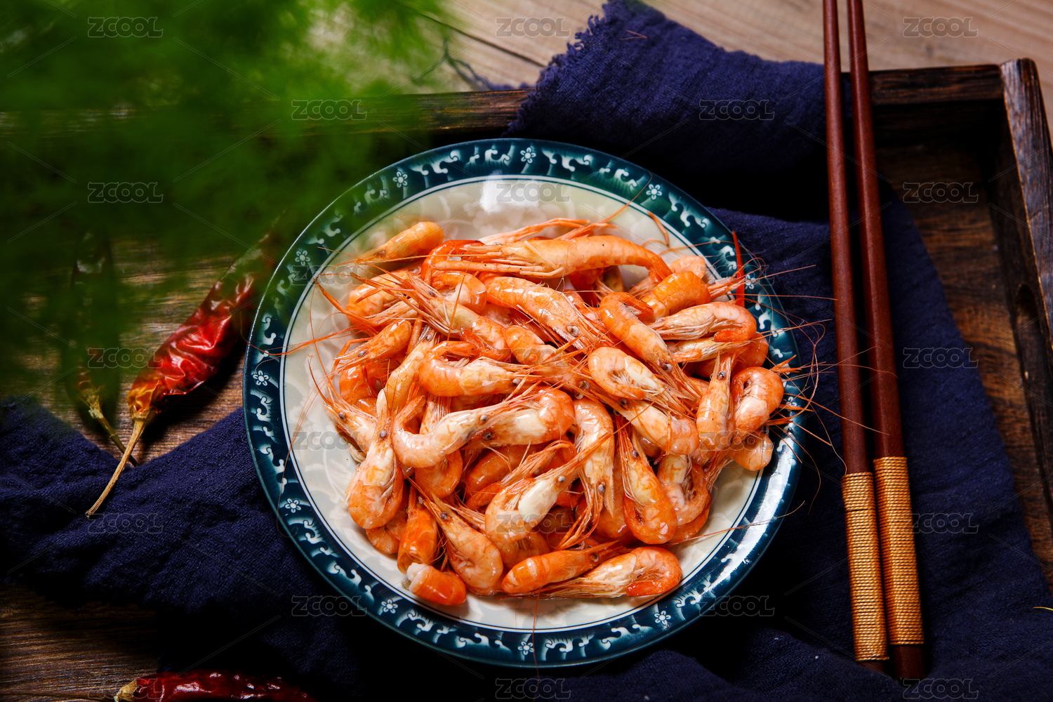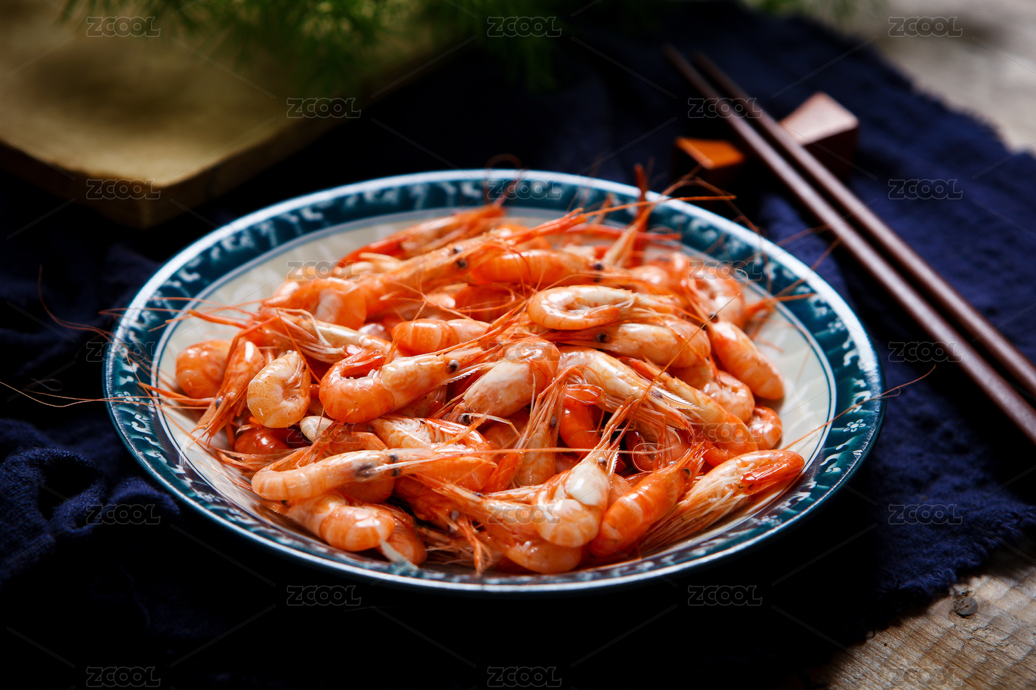 装在碟子里的美味海鲜食材河虾