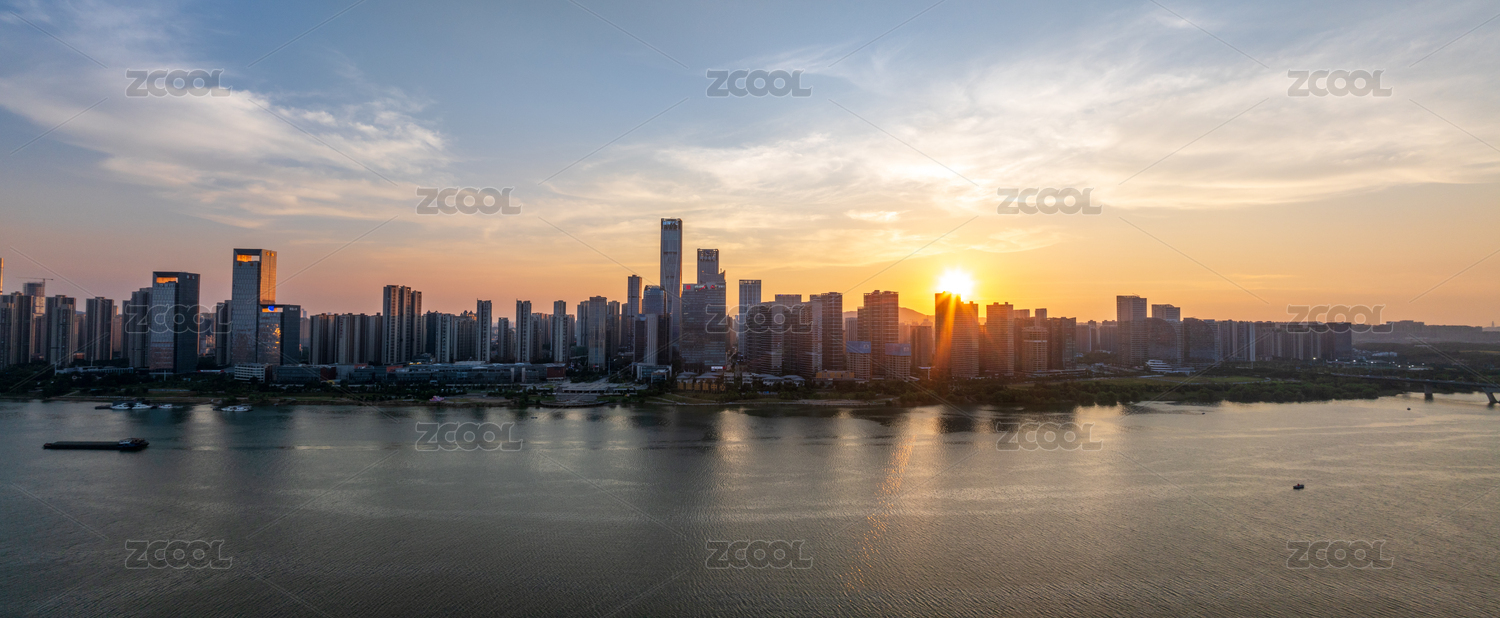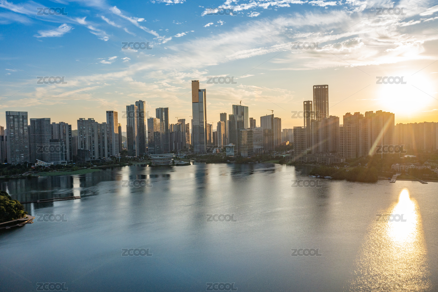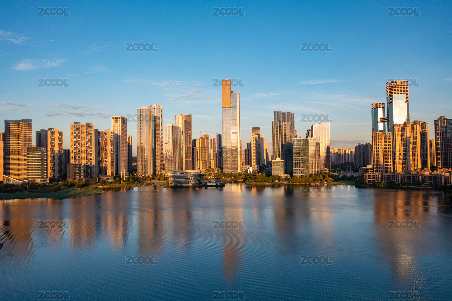 梅溪湖,长沙,城市,航拍,玻璃幕墙,高楼,房地产,梅溪湖城市岛,水面,蓝天