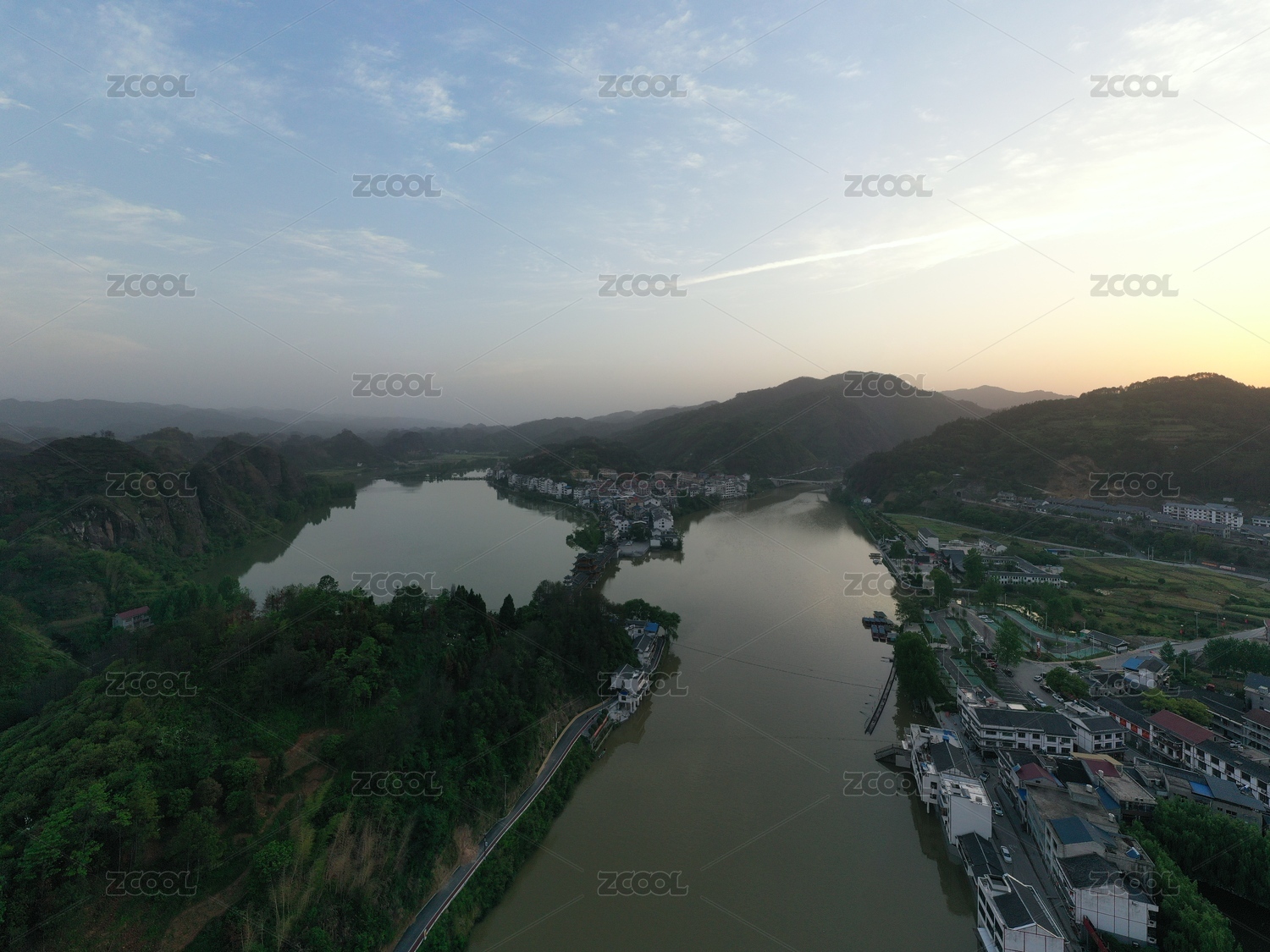湖南省溆浦县思蒙国家湿地公园建筑群航拍图