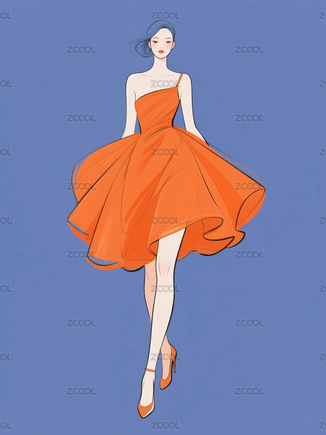 红裙丽影插图背景