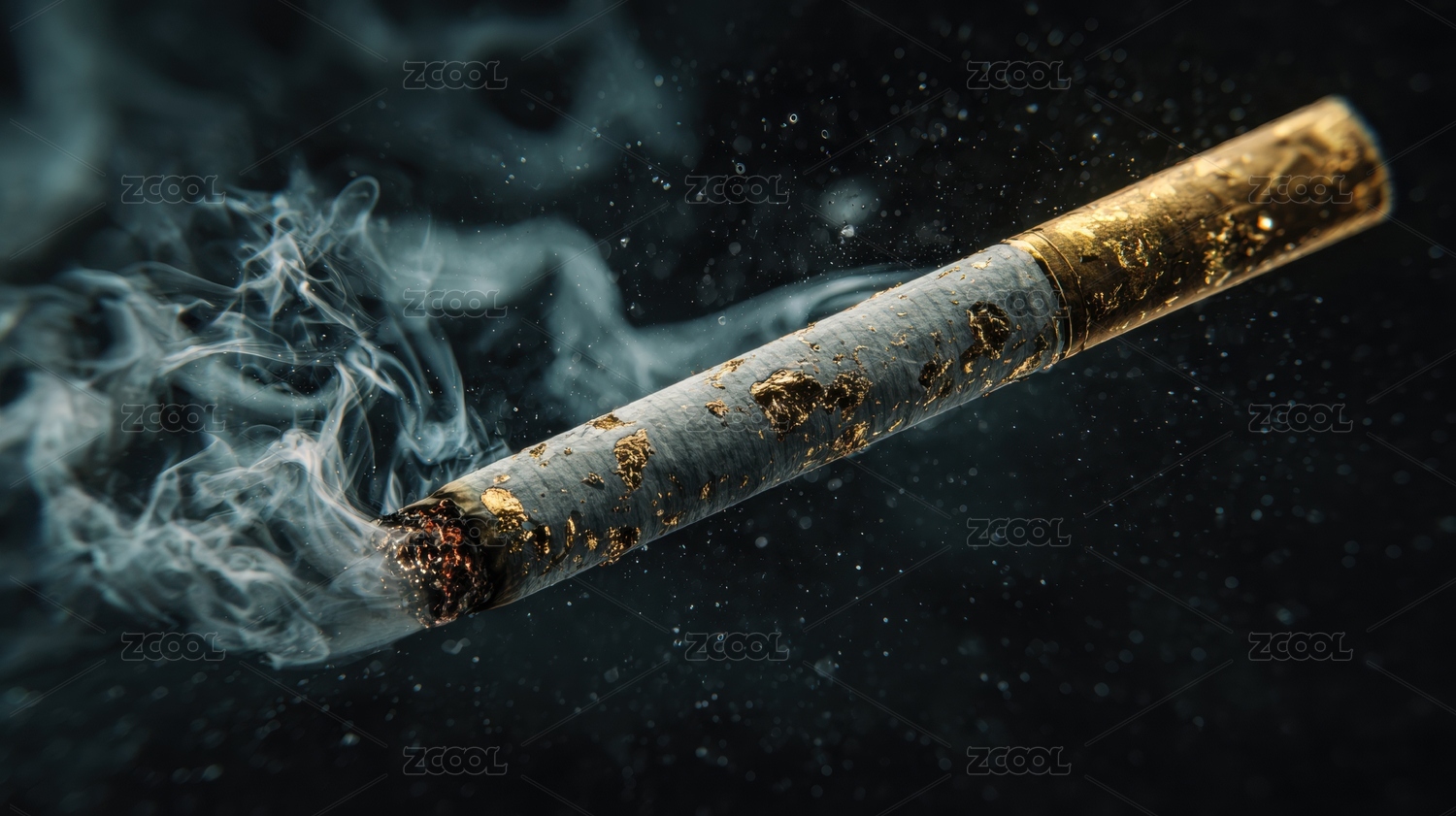 燃烧的香烟与缭绕烟雾
