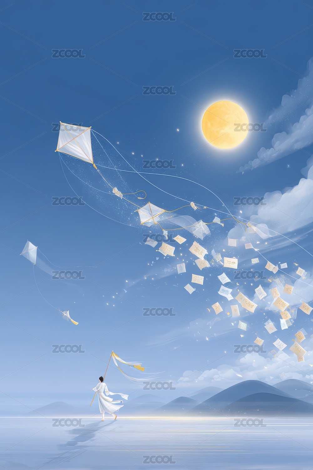 少女海边浪漫幻想治愈插画