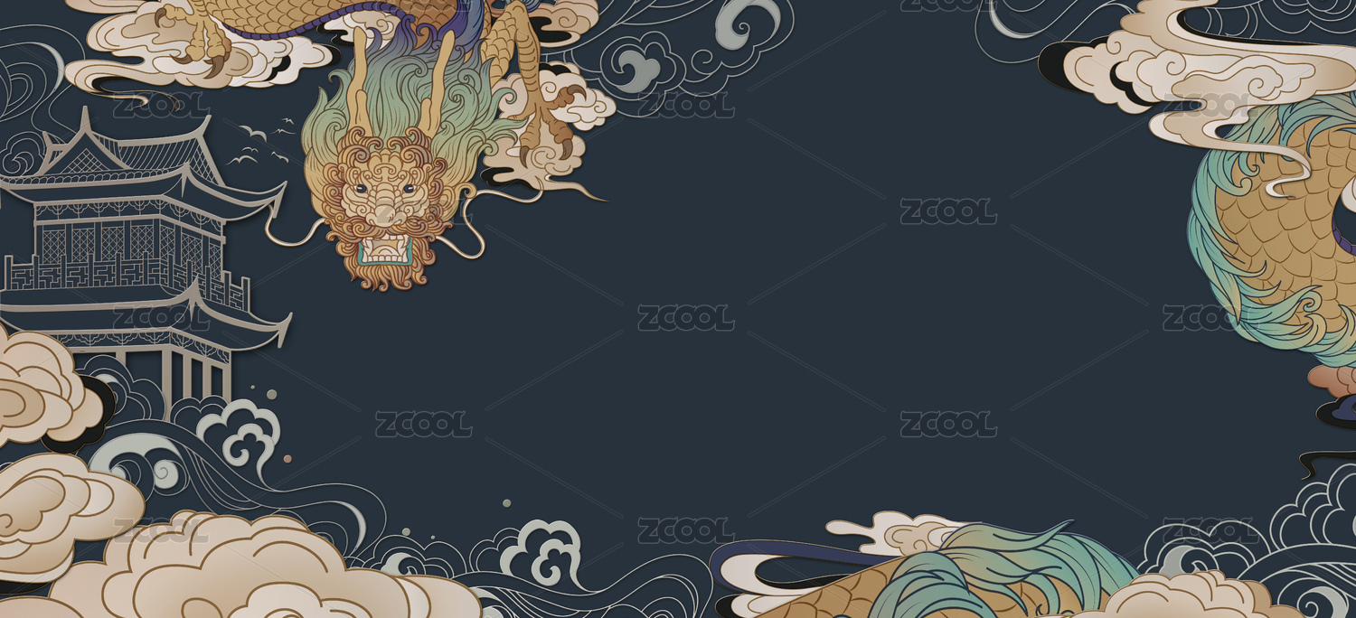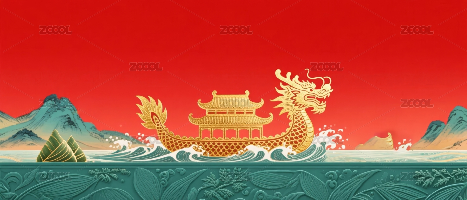 国风,端午,插画,图案,端午节,中国风,龙,祥云,海浪,赛龙舟