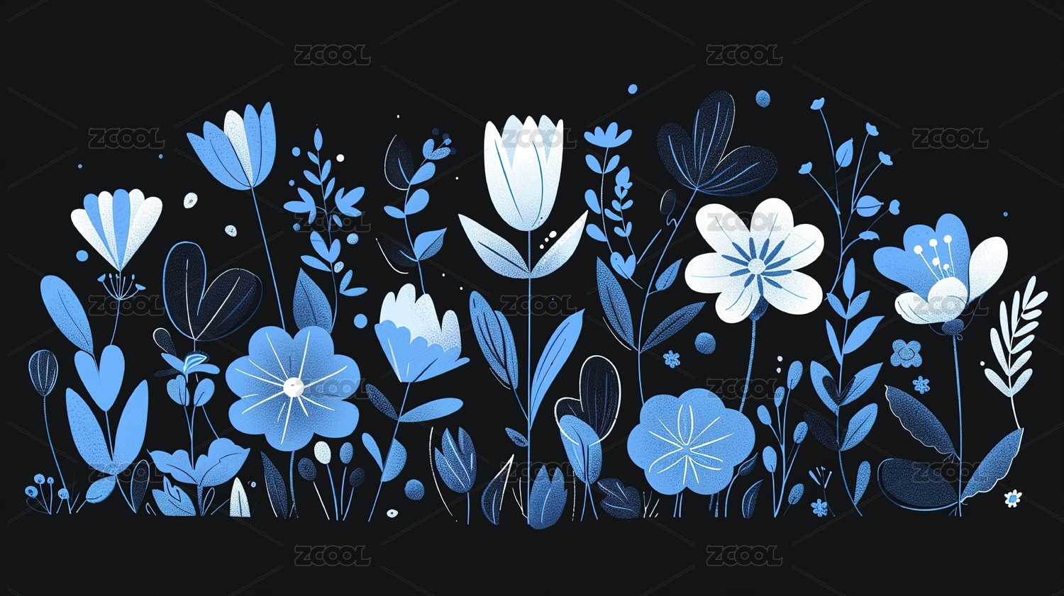 矢量卡通龙胆草草本花朵花束装饰分割线