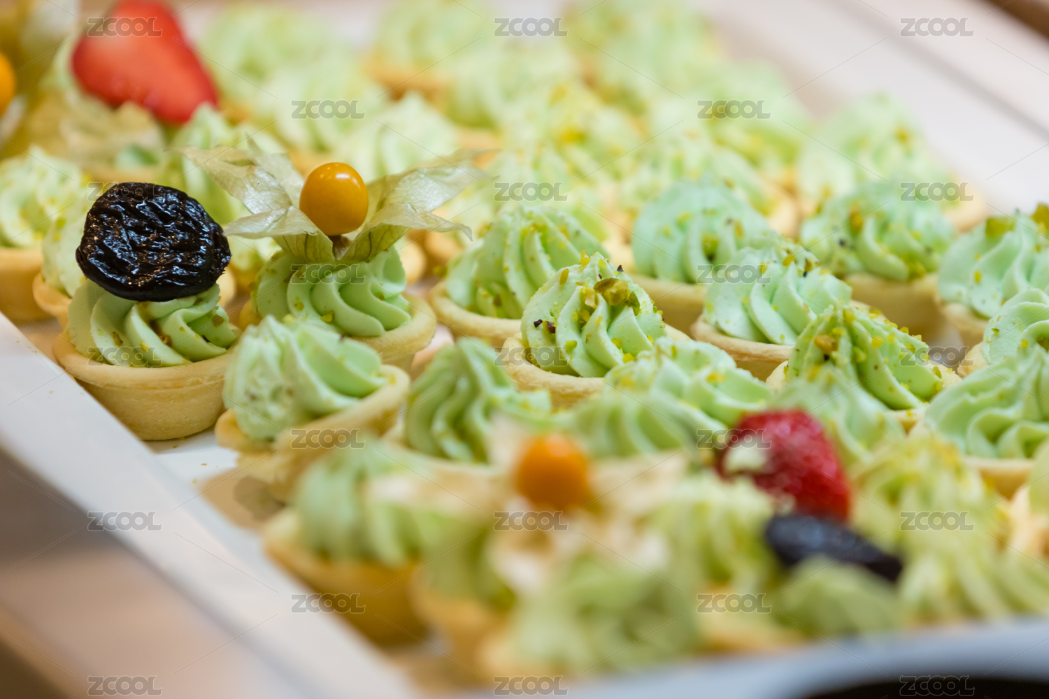 精致的木制托盘中盛装着造型各异的蛋糕甜点