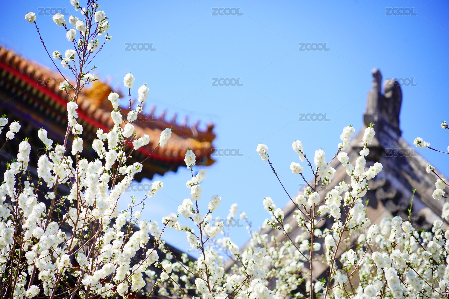 春天北京故宫博物院承乾宫里盛开的白色梨花