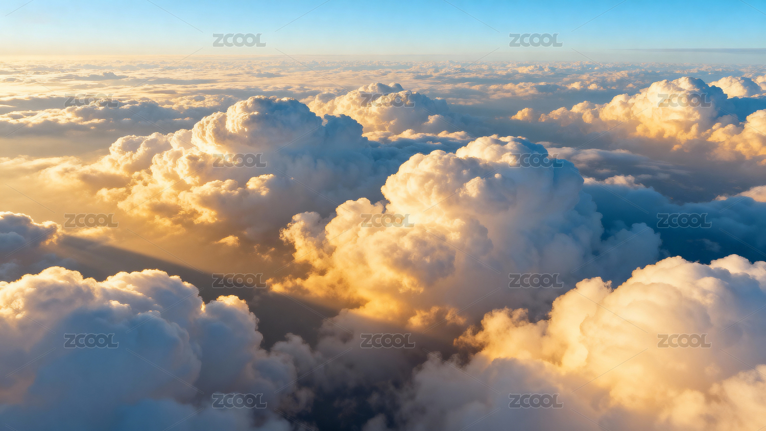 高空云层沐浴金色阳光壮丽景象