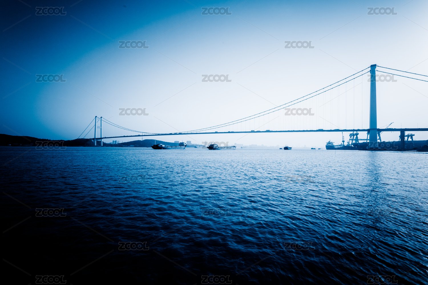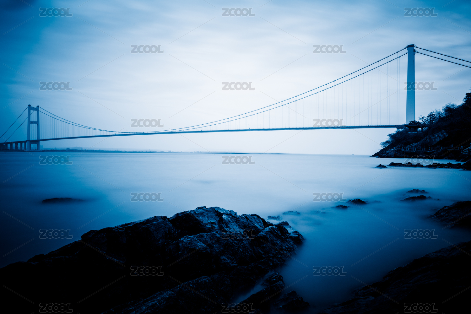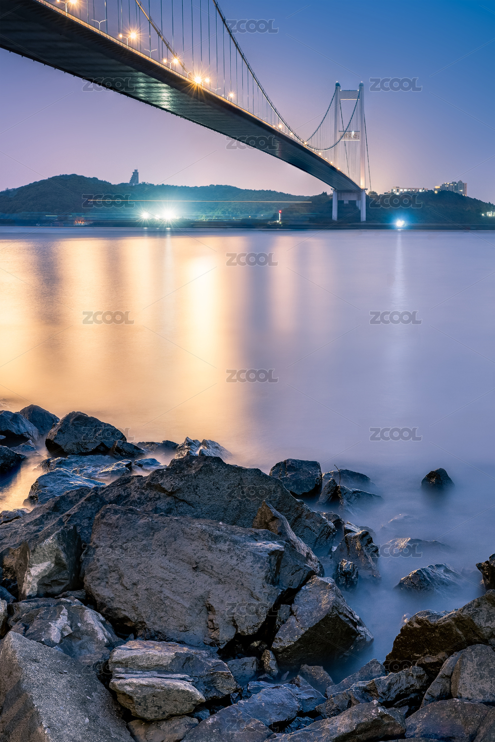 晚霞中,横跨长江的悬索江阴大桥,江阴