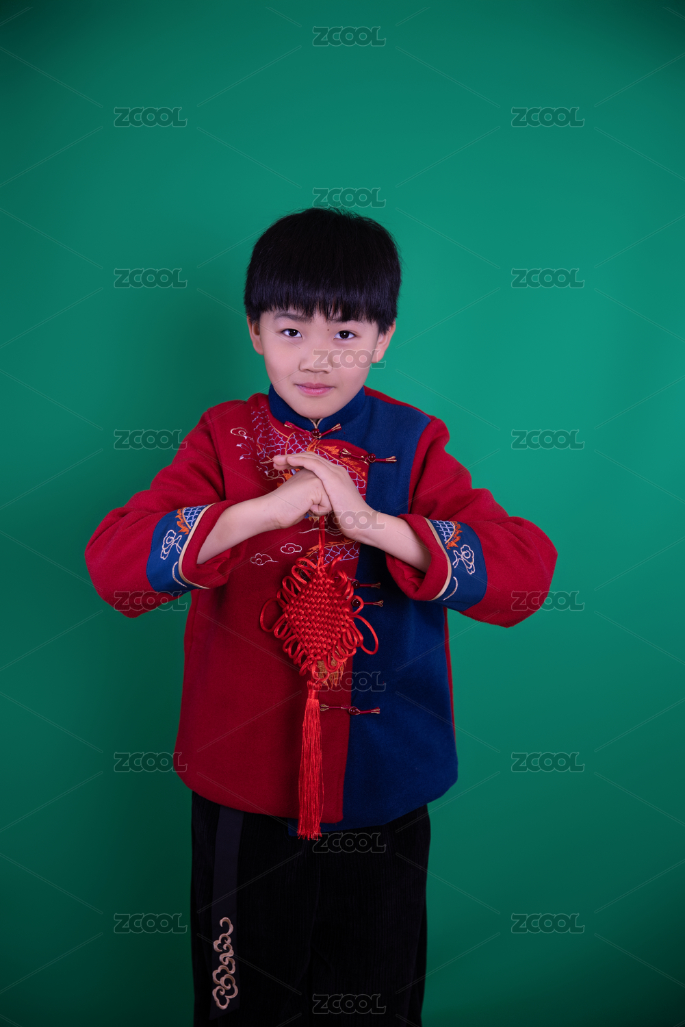 中国小男孩春节恭贺新年拜年绿幕抠像