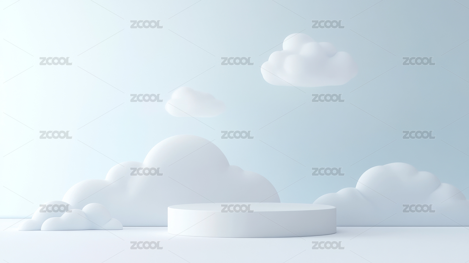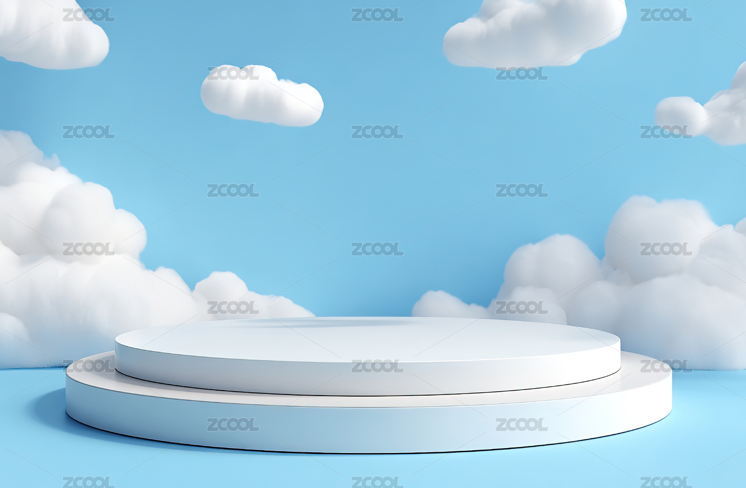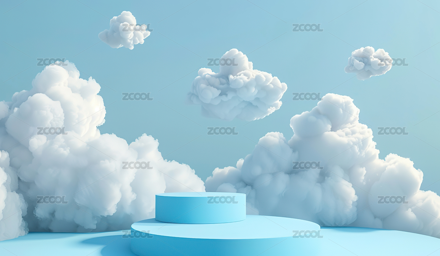 蓝色背景下云朵造型的创意展台