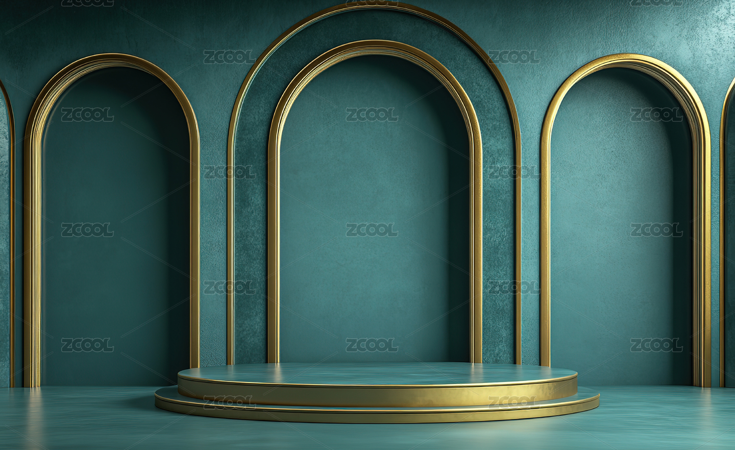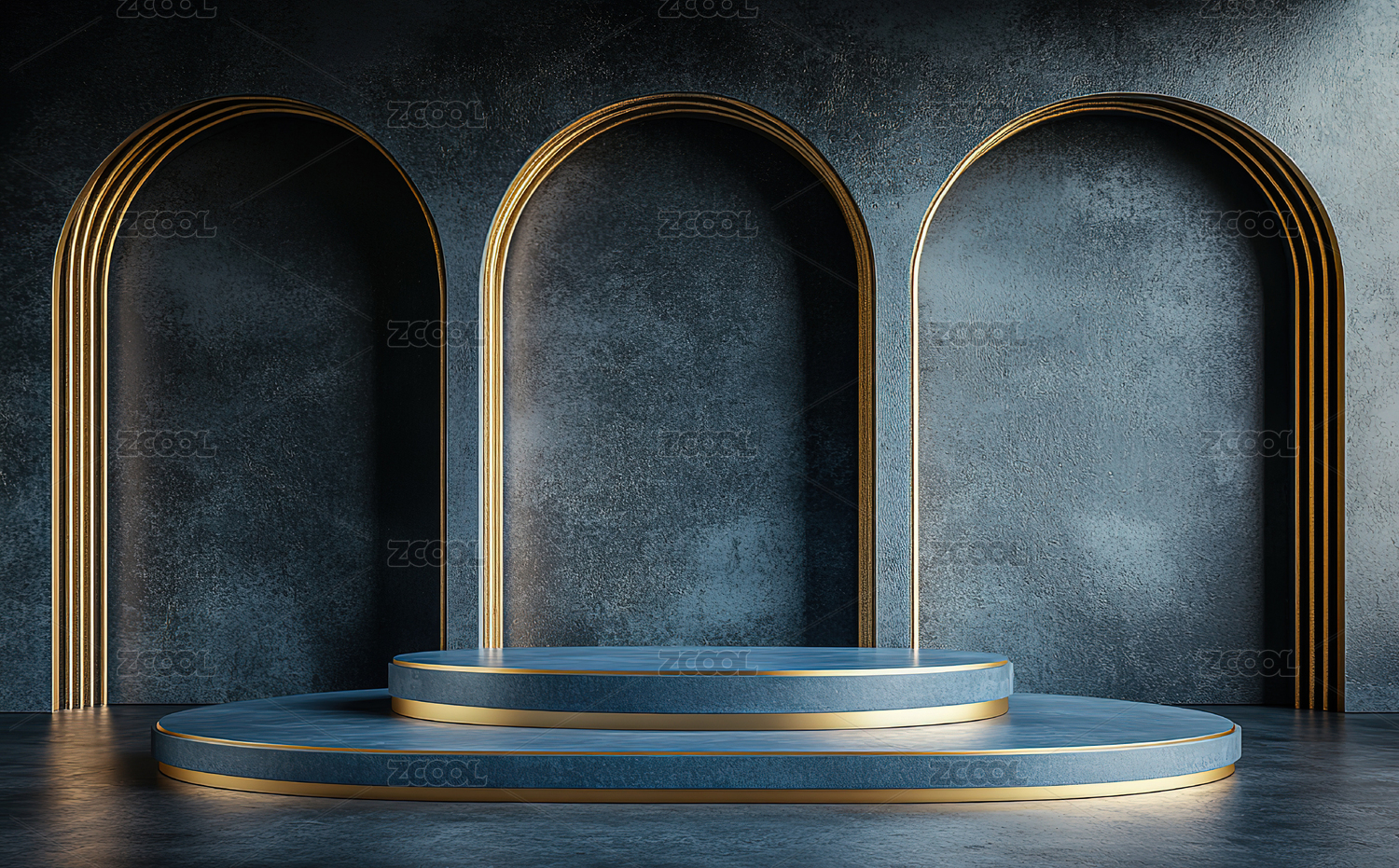 蓝色背景下的金色拱门舞台