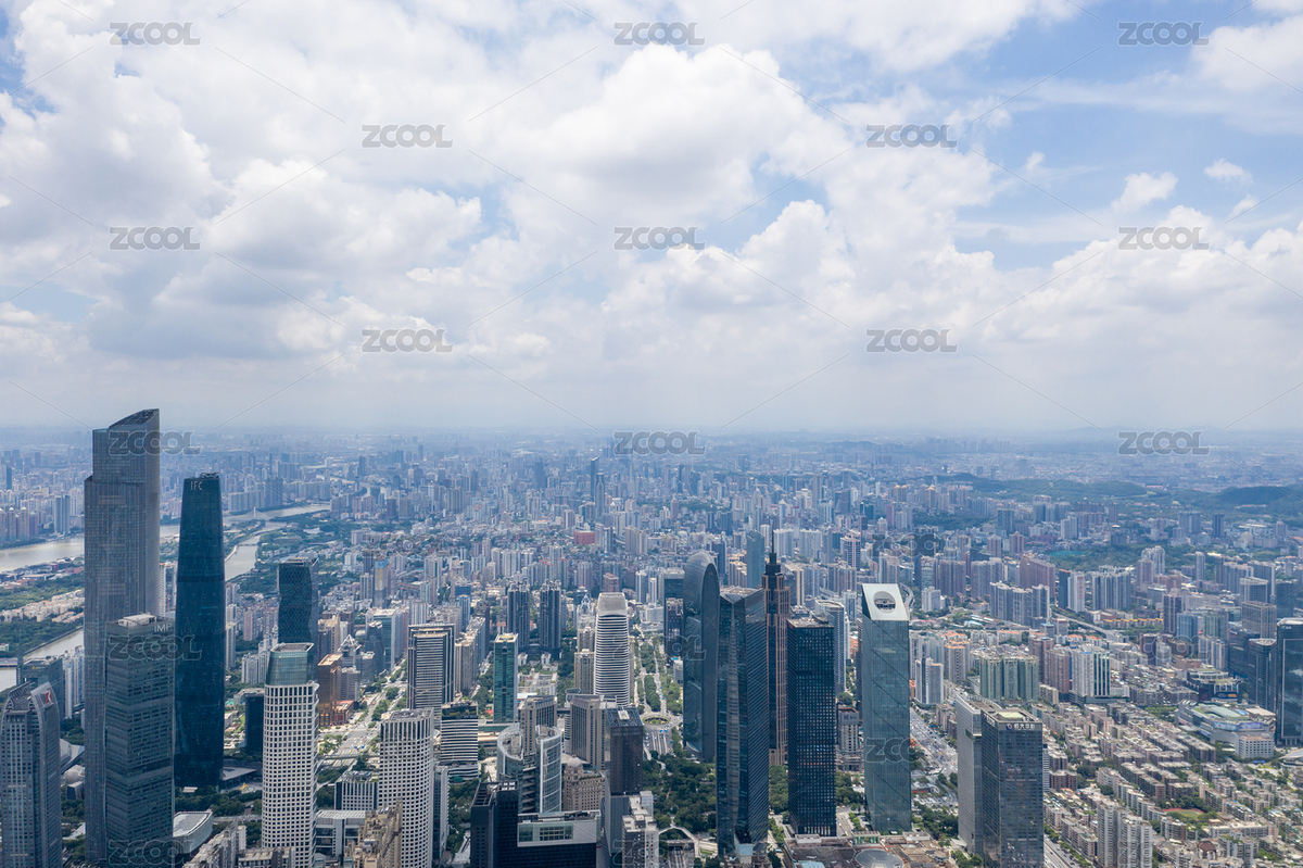 航拍鸟瞰广东省广州珠江新城CBD城市风光