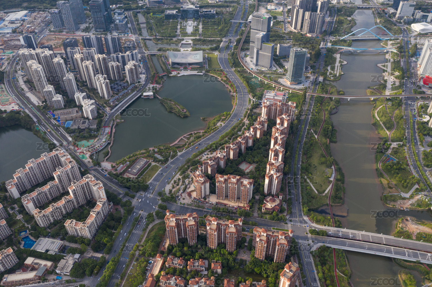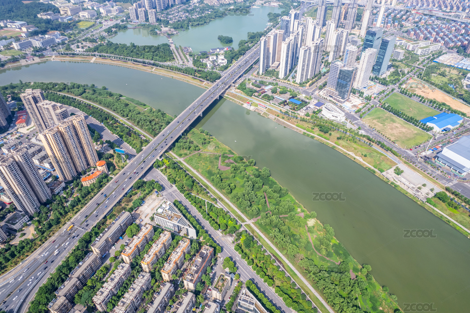 航拍郑州高新区天健湖公园城市湿地湖泊水系