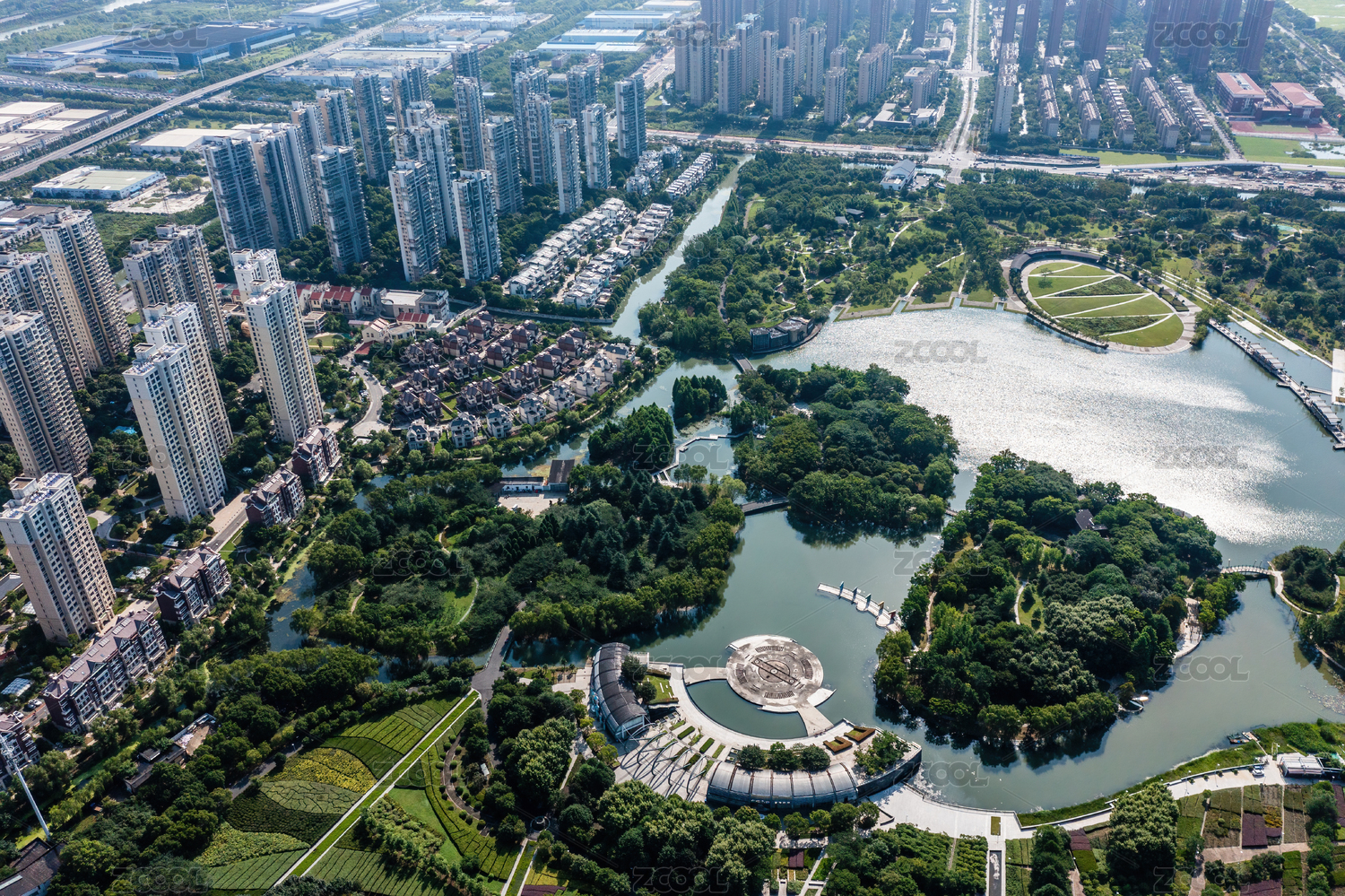 航拍郑州龙子湖郊野公园优美自然生态环境
