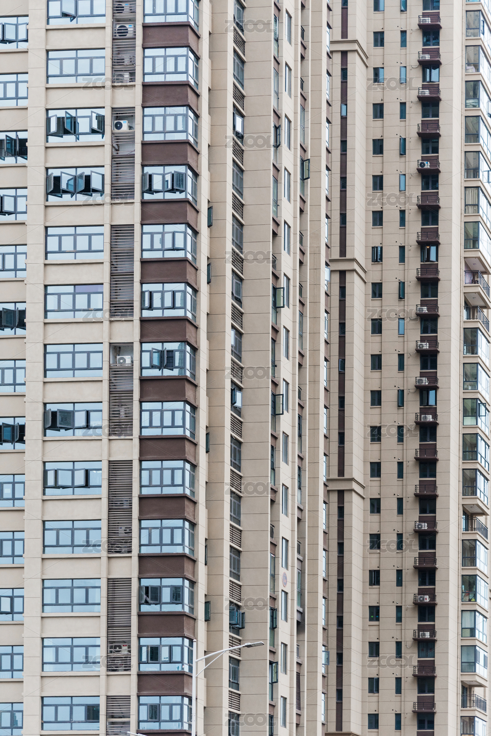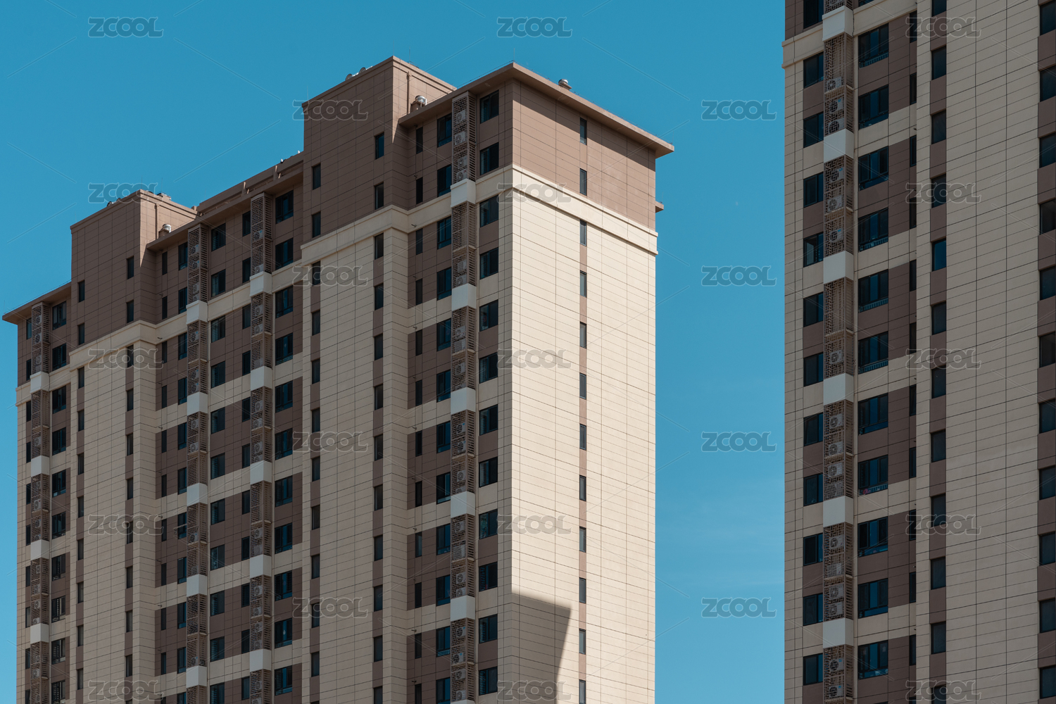 城市建筑灰白色的独栋民用住宅楼盘与蓝天