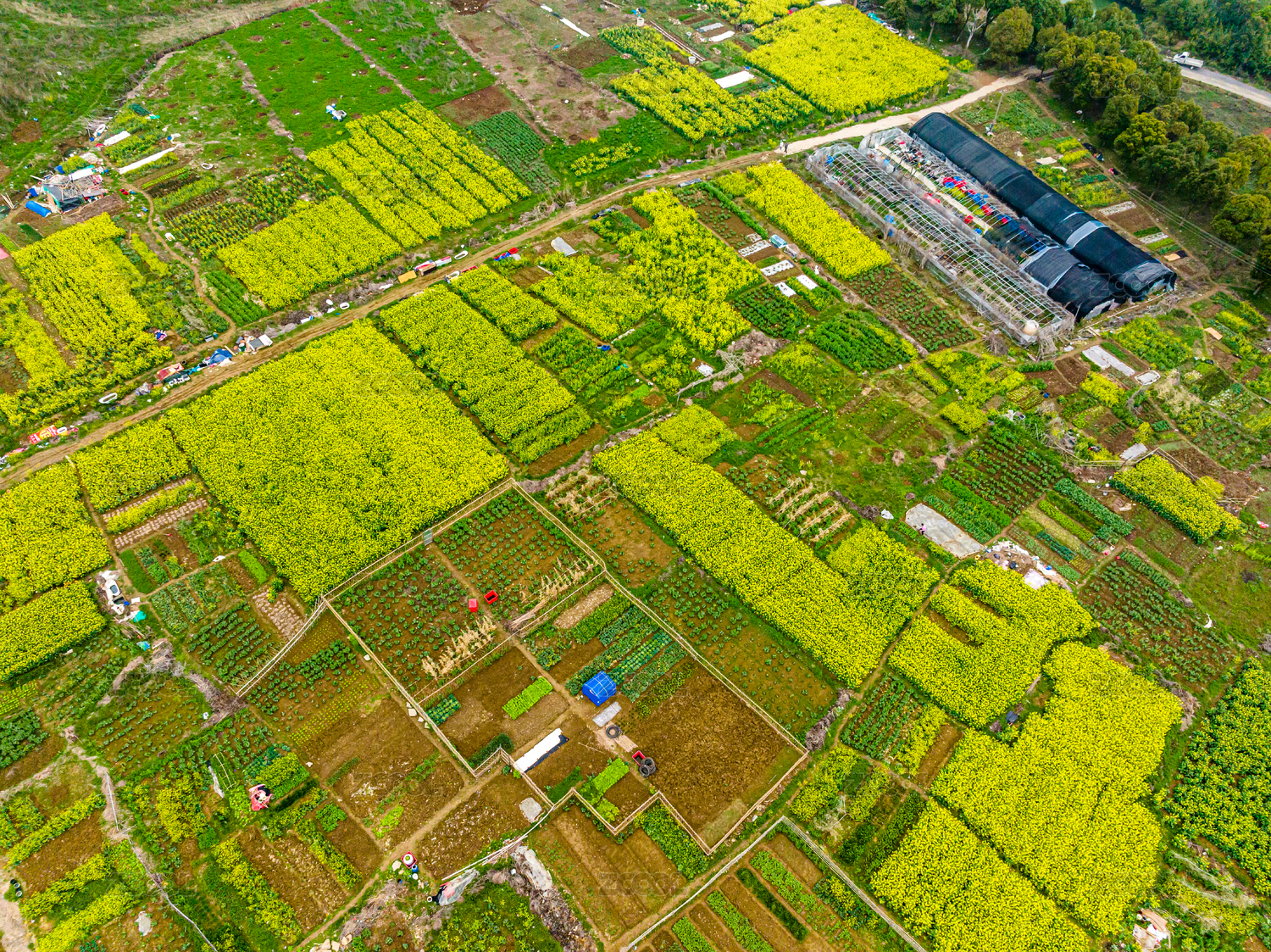 中国,江苏,苏州,同里,北联村,油菜花,春天,航拍视角,农田,农业太湖