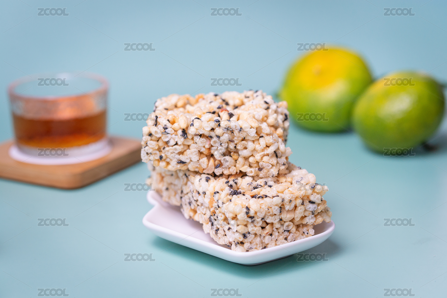 青底上的传统节日小吃--麻老和茶水柑桔